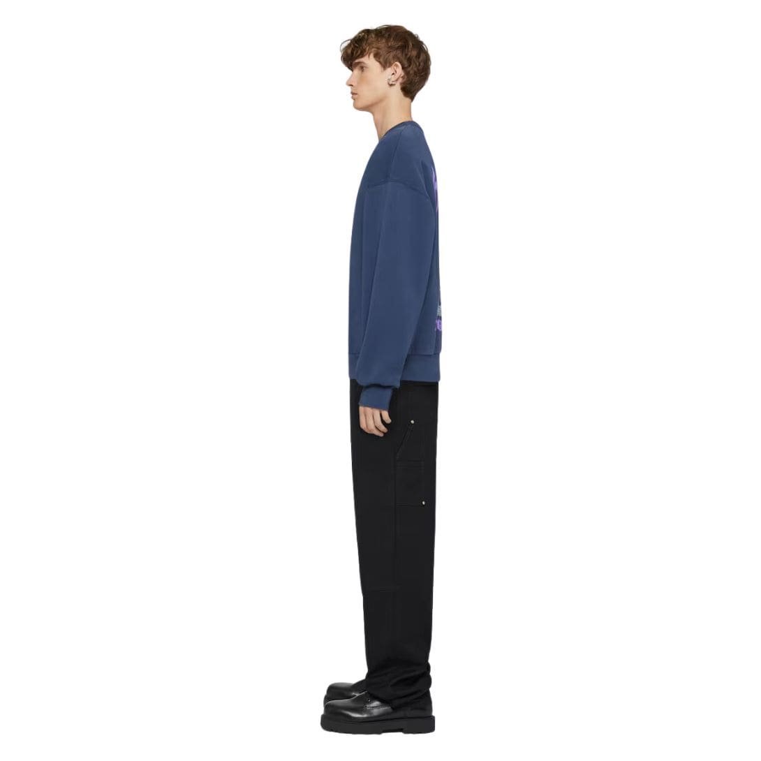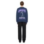 The sweatshirt’s color palette is typically understated yet elegant, often in classic tones such as black or grey, allowing the reflective artwork to stand out even more. It includes a crew neckline, which is a staple for both casual and streetwear-inspired outfits, and ribbed cuffs and hem that ensure a snug fit and help to maintain the garment’s shape over time.