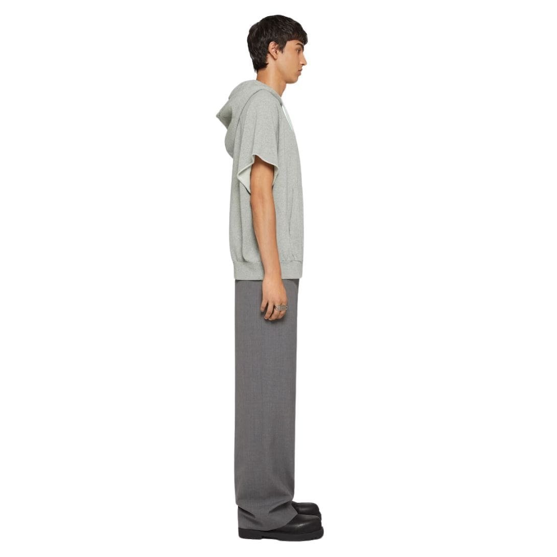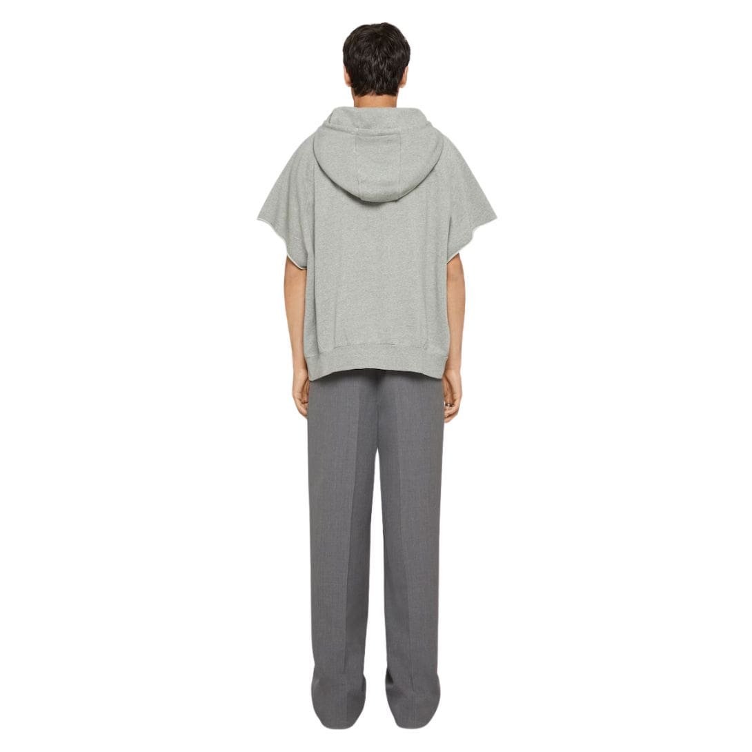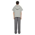 The design also includes a classic hood with adjustable drawstrings, allowing for a customizable fit and added warmth on cooler days. The lack of sleeves emphasizes the hoodie’s sporty and streetwise appeal, while the ribbed hem and armholes offer a snug and tailored finish.