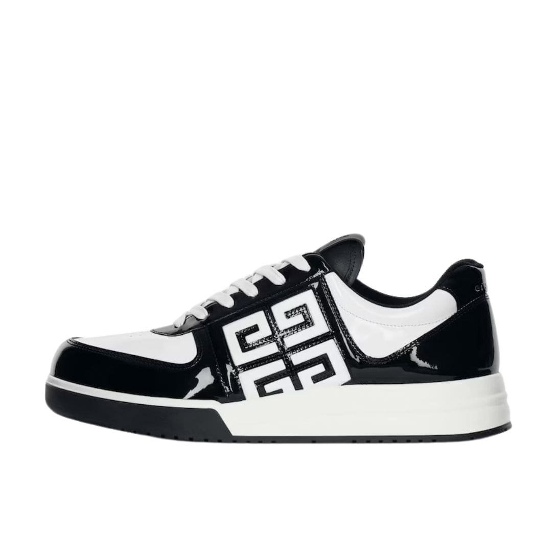 At first glance, the silhouette of the G4 sneakers strikes a balance between athletic functionality and high-fashion aesthetics. The sleek lines and smooth curves of the patent leather upper create a streamlined look that effortlessly elevates any casual ensemble. The Givenchy logo subtly embossed on the side adds a touch of branding without overwhelming the shoe’s minimalist design.