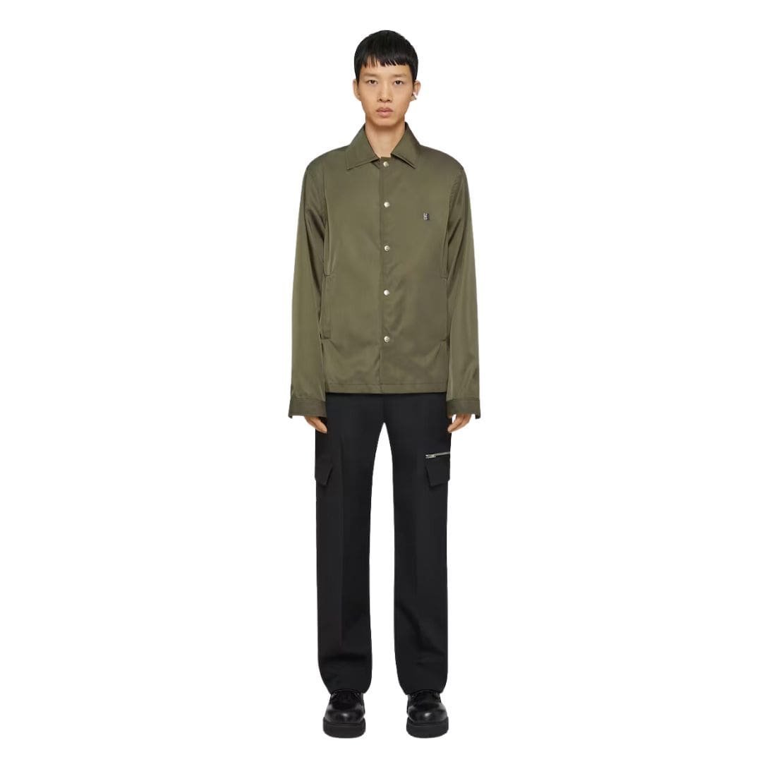 Featuring a classic button-down front, the overshirt is versatile enough to be worn open over a tee or buttoned up for a more polished look. The collar is designed with a modern twist, often featuring a sleek, minimalistic cut that enhances the shirt’s clean lines. The cuffs are adjustable, providing a customizable fit, while the tailored sleeves ensure a streamlined appearance. Two chest pockets with flap closures add functionality and a nod to traditional workwear aesthetics. GIVENCHY OVERSHIRT WITH 4G DETAIL