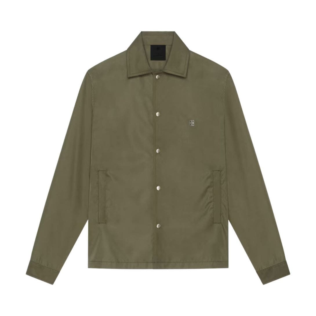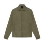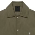 The overshirt is distinguished by its subtle yet striking 4G detailing—a hallmark of Givenchy’s iconic design language. The 4G pattern, inspired by the brand’s emblematic logo, is meticulously embroidered or woven into the fabric, creating a sophisticated texture that adds depth and visual interest. This detail is often presented in a tonal or contrasting color, allowing it to seamlessly integrate into the overall design while subtly asserting its luxury status.