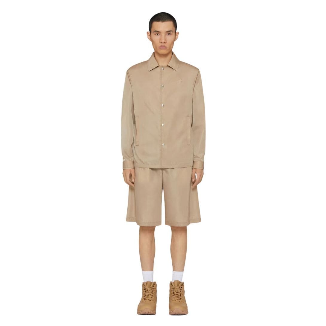 The Givenchy Overshirt with 4G Detail is a standout piece in contemporary fashion, blending sophistication with urban edge. Crafted from a premium blend of lightweight cotton and polyester, this overshirt offers both comfort and durability, making it ideal for layering across seasons. Its sleek, tailored silhouette strikes the perfect balance between casual and refined, elevating any outfit with a touch of high-end flair GIVENCHY OVERSHIRT WITH 4G DETAIL.