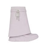 The design is characterized by its signature Shark Lock hardware, a standout feature that adds an element of boldness and intrigue. This distinctive lock closure, often associated with Givenchy’s iconic style, combines a sleek metallic finish with a utilitarian vibe, offering both security and a touch of avant-garde flair. The lock is meticulously designed to provide a secure fit while making a striking visual impact.