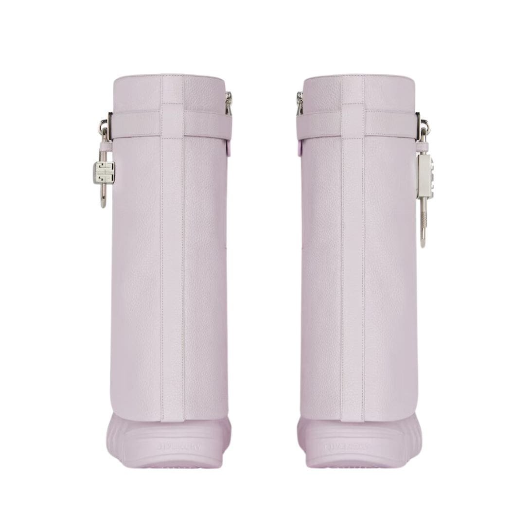 The Givenchy Shark Lock Biker Ankle Boots in grained leather are a bold statement piece that blends rugged sophistication with high-fashion edge. Crafted from premium grained leather, these boots exude durability and a refined texture, enhancing their timeless appeal. The grained finish not only provides a distinct tactile quality but also ensures the boots maintain their elegant look while standing up to daily wear.