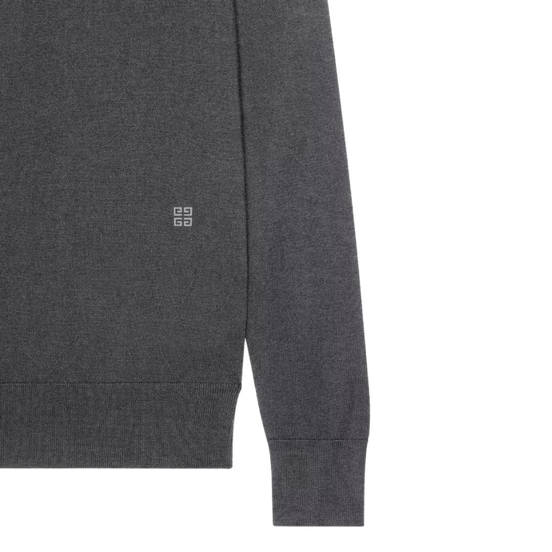 The sweater features a classic design with a modern twist. Its silhouette is streamlined and fitted, creating a flattering shape that enhances the wearer’s figure without being overly snug. The ribbed crew neckline, cuffs, and hemline provide a polished finish and ensure the sweater retains its shape over time. The subtle Givenchy logo is discreetly embroidered on the chest, adding a touch of brand recognition without overwhelming the minimalist aesthetic.