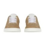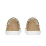 The design of these sneakers is both contemporary and timeless, featuring clean lines and a streamlined silhouette. The muted, versatile color palette allows for easy pairing with various outfits, from casual jeans and t-shirts to more polished ensembles. The subtle branding, typically seen in the form of an embossed logo on the tongue and heel, adds a touch of understated luxury without overwhelming the overall design.