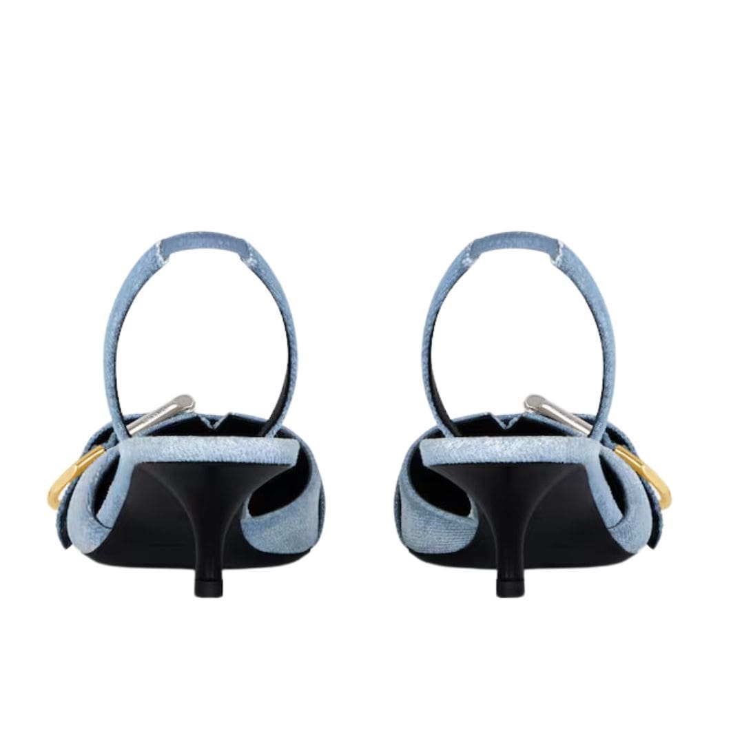 The Givenchy Voyo Slingbacks in Washed Denim exemplify the brand’s ability to merge casual aesthetics with high-fashion sophistication. These slingback shoes are a modern take on classic denim footwear, offering a unique blend of style and comfort that can elevate any outfit.
