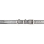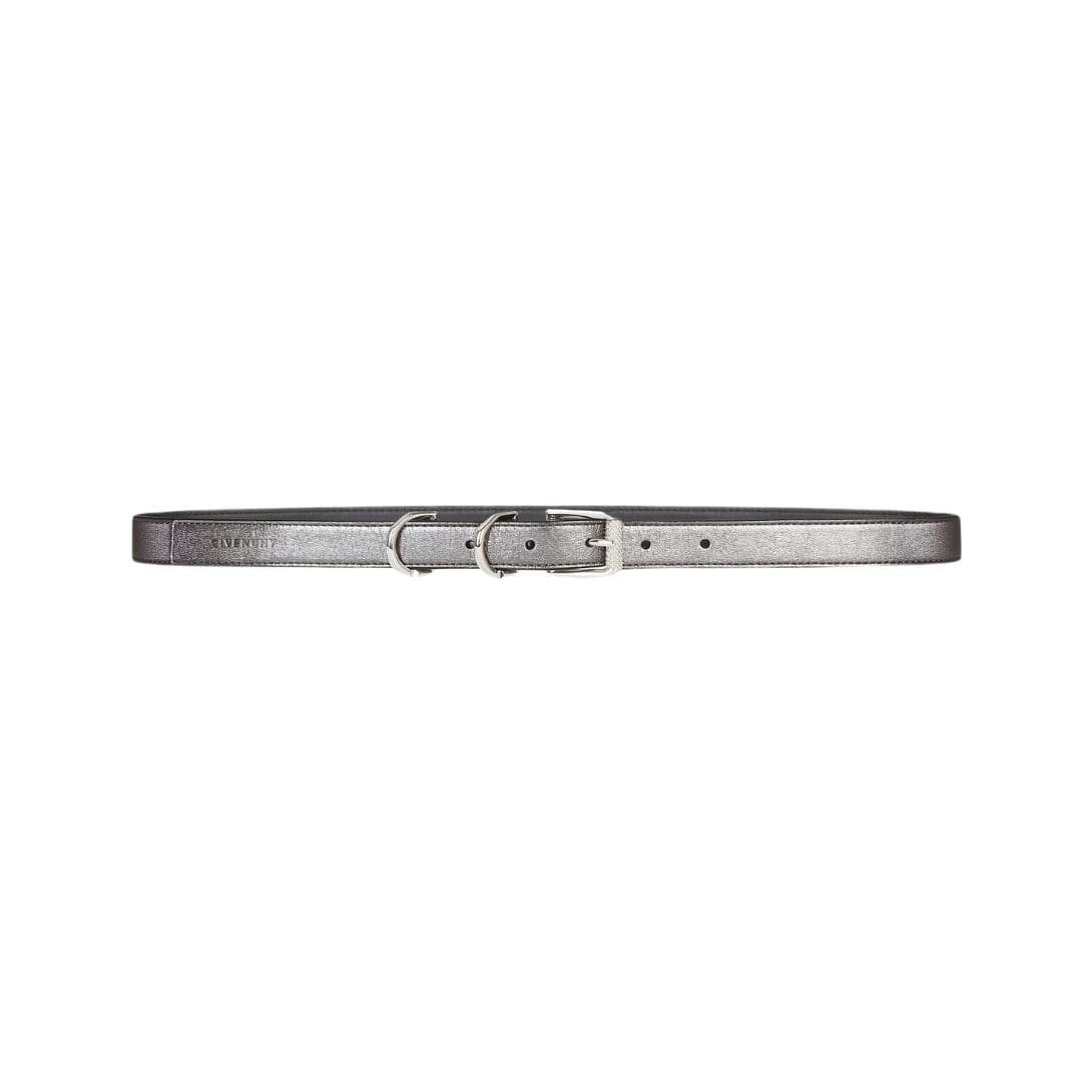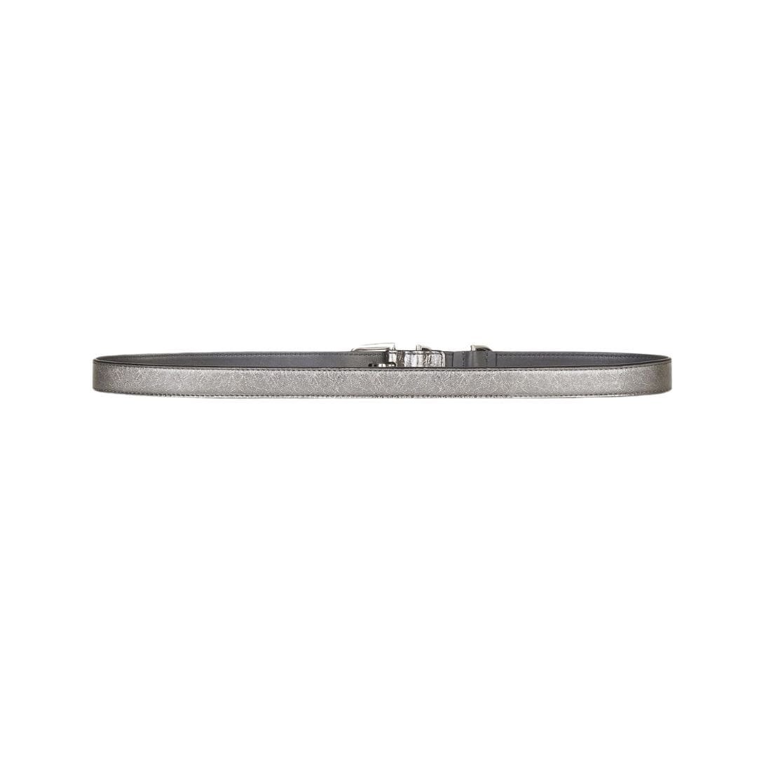 At the heart of this belt lies its distinctive design, exuding a sense of modern refinement. Crafted from premium lambskin leather, the belt boasts a lustrous finish that adds a touch of glamour to any ensemble. Its silvery grey colour palette offers a contemporary twist on a classic shade, ensuring effortless coordination with a variety of outfits.