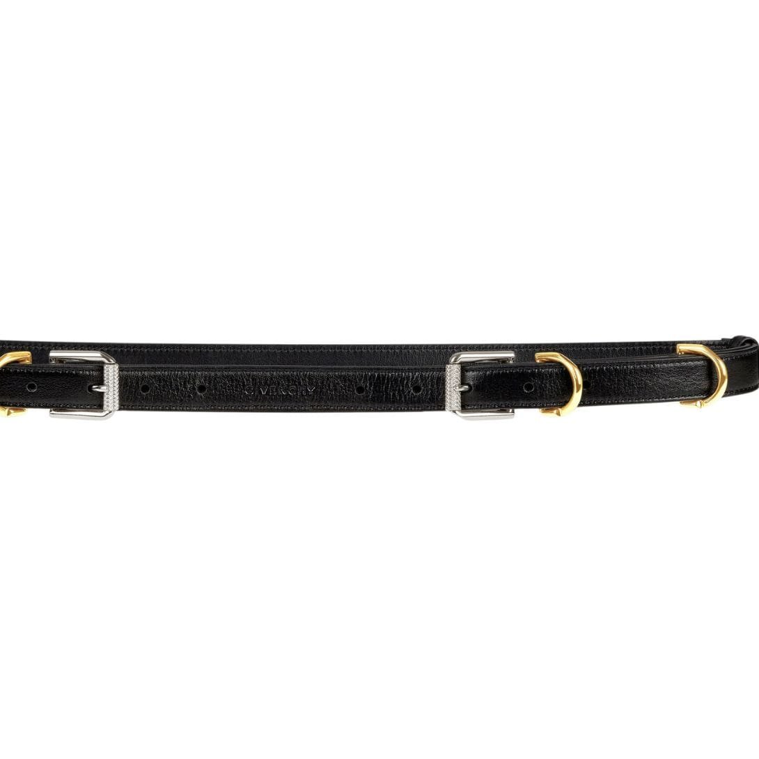 At the heart of this belt lies its silvery-finish buckles and golden-finish rings, which serve as striking accents that elevate its overall aesthetic. The meticulous attention to detail is evident in every aspect, from the GIVENCHY signature embossed on the front to its subtle presence on the lining, adding a touch of prestige to this iconic accessory.