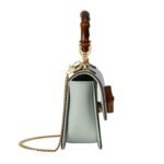 The defining element of this bag is its bamboo handle, handcrafted through a meticulous process that involves heating and bending bamboo to achieve the perfect arc. This unique handle not only serves as a functional component but also as a bold design statement, symbolizing Gucci’s blend of tradition and innovation. GUCCI BAMBOO 1947 SUPER MINI BAG
