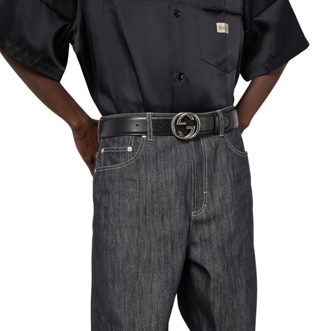 Gucci belt With Interlocking G Buckle In our ongoing commitment to innovation and timeless style, we present a classic reimagining of the GG Supreme canvas. Each season, this emblematic material takes on new forms, embodying the essence of luxury and sophistication. Here, the GG monogram in dark shades defines a classic style tailored for men, complemented by a refined grey leather trim that adds a touch of understated elegance.