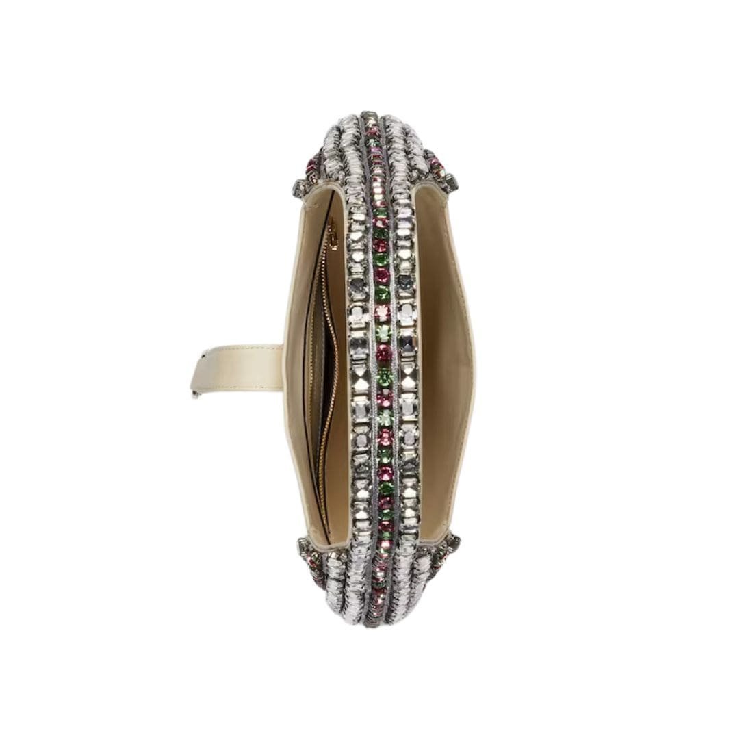 Inside, the Jackie Small Shoulder Bag is as thoughtfully designed as its exterior. The interior is lined with suede or microfiber and features a zip pocket and open compartments, ensuring that essentials are well-organized and easily accessible. GUCCI JACKIE SMALL SHOULDER BAG