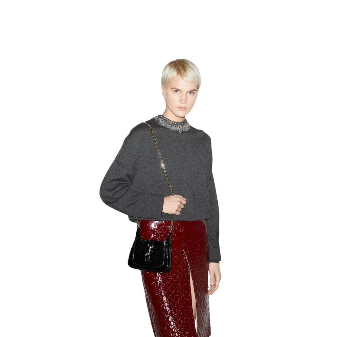 The Gucci Jackie Notte Mini Bag is a sophisticated and elegant accessory, embodying the timeless charm and contemporary flair of the Gucci brand. This mini bag is a modern take on a classic design, originally introduced in the 1960s and named after Jackie Kennedy, who was often seen carrying the original hobo-style bag. The “Notte” iteration adds a sleek and modern twist to this iconic silhouette, making it a must-have for any fashion-forward individual. GUCCI JACKIE NOTTE MINI BAG