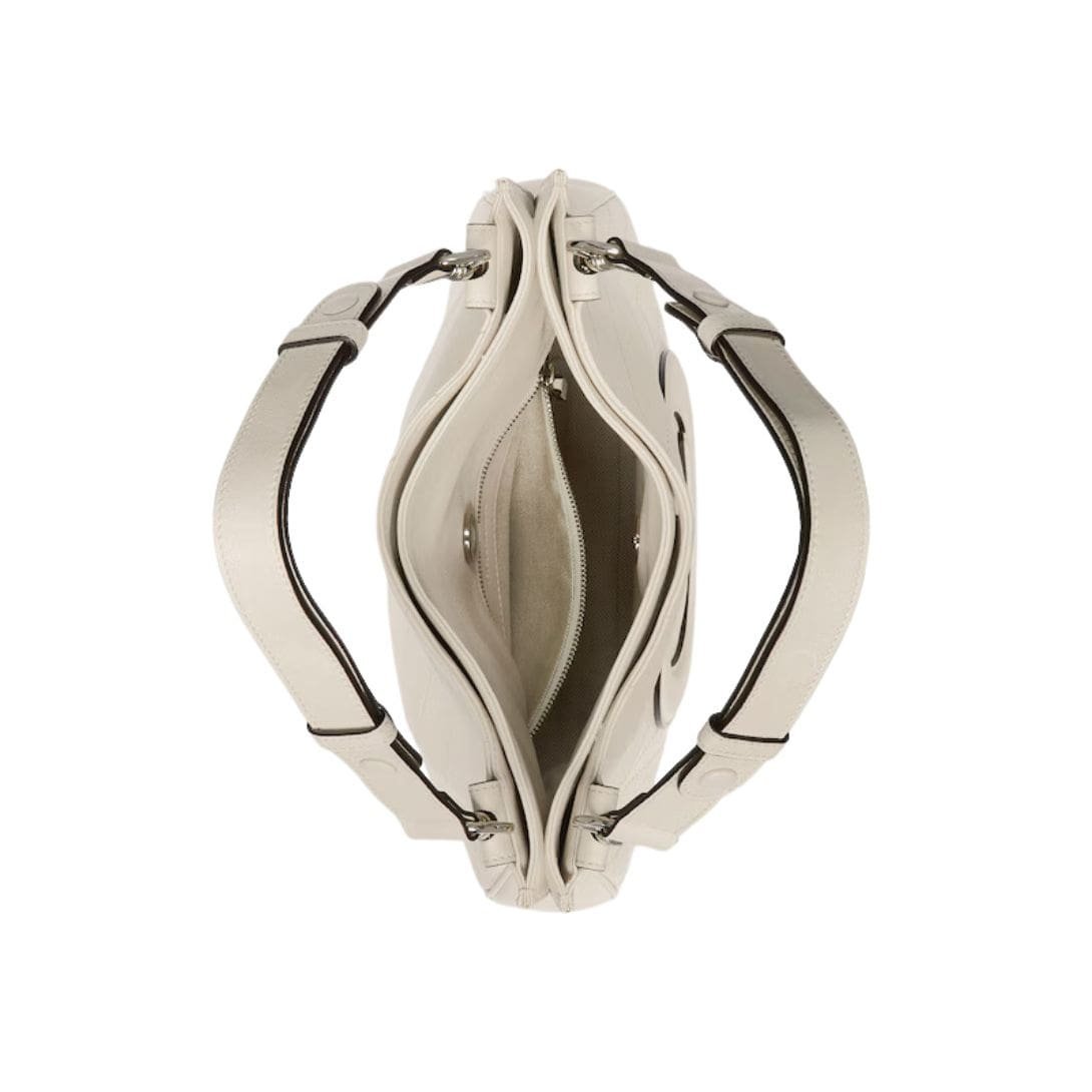The bag features dual top handles, allowing for a comfortable carry in hand or on the forearm. For added convenience, it includes a detachable shoulder strap, giving you the option to wear it crossbody or over the shoulder, catering to various style preferences and occasions.