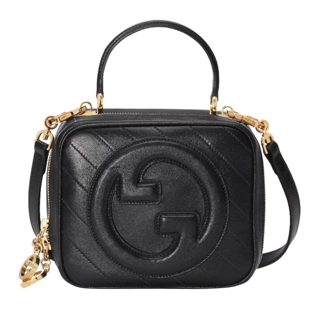 The front of the bag is adorned with the iconic interlocking GG logo, a symbol of Gucci’s storied legacy and commitment to exquisite craftsmanship. This emblem is beautifully set against the bag’s smooth leather surface, creating a harmonious contrast that catches the eye. The bag is available in a variety of colors, from classic black and white to bold hues like red and green, catering to different tastes and styles. GUCCI BLONDIE TOP HANDLE BAG