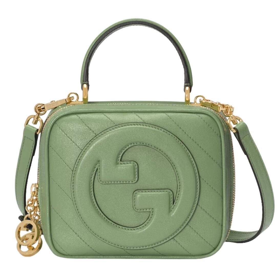 The front of the bag is adorned with the iconic interlocking GG logo, a symbol of Gucci’s storied legacy and commitment to exquisite craftsmanship. This emblem is beautifully set against the bag’s smooth leather surface, creating a harmonious contrast that catches the eye. The bag is available in a variety of colors, from classic black and white to bold hues like red and green, catering to different tastes and styles. GUCCI BLONDIE TOP HANDLE BAG