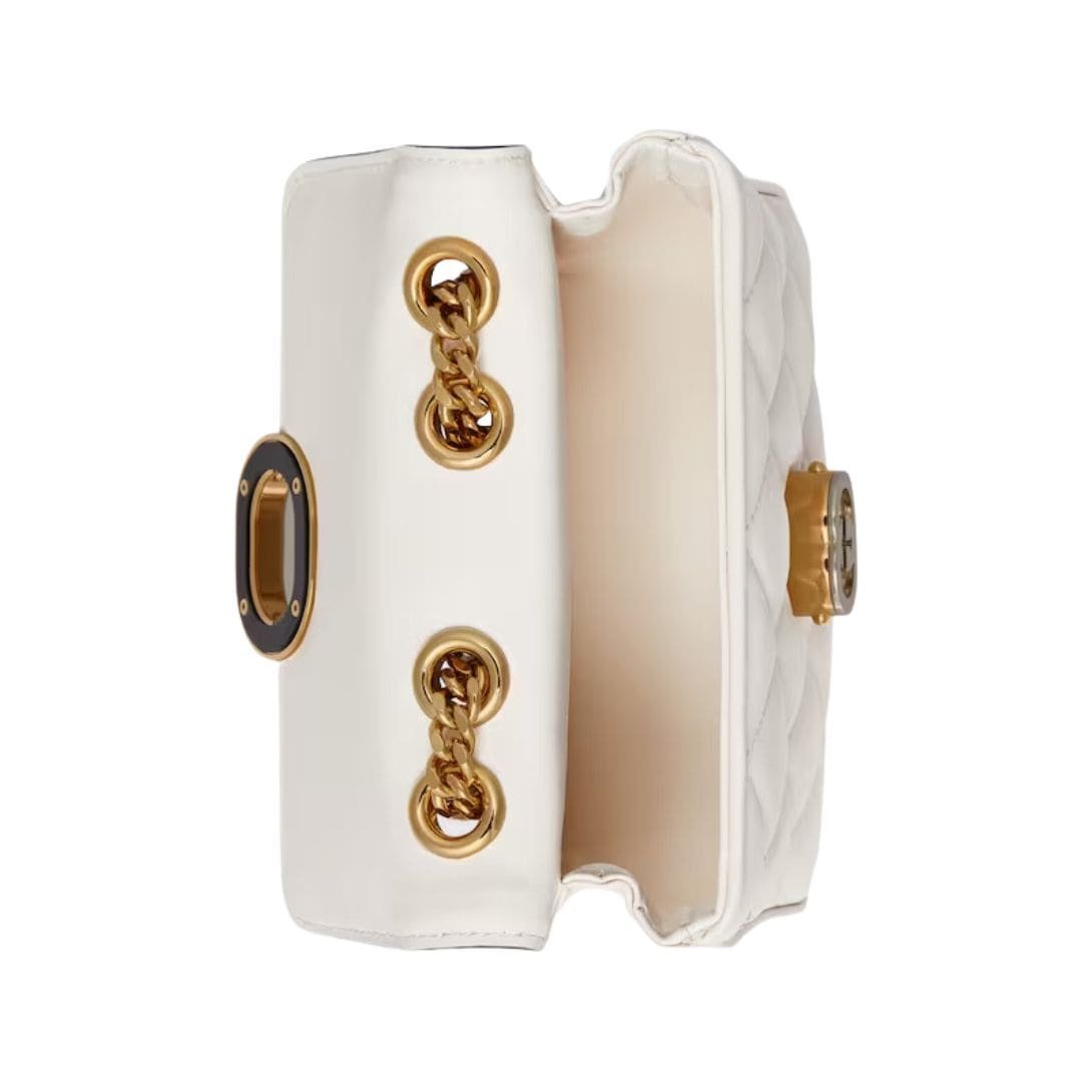 The Gucci Deco Small Shoulder Bag is designed with versatility in mind. The adjustable chain strap allows for multiple carrying options, enabling you to wear it as a shoulder bag or crossbody for a more casual look. The chain strap, with its polished finish, adds a hint of glamour and complements the overall design beautifully. GUCCI DECO SMALL SHOULDER BAG