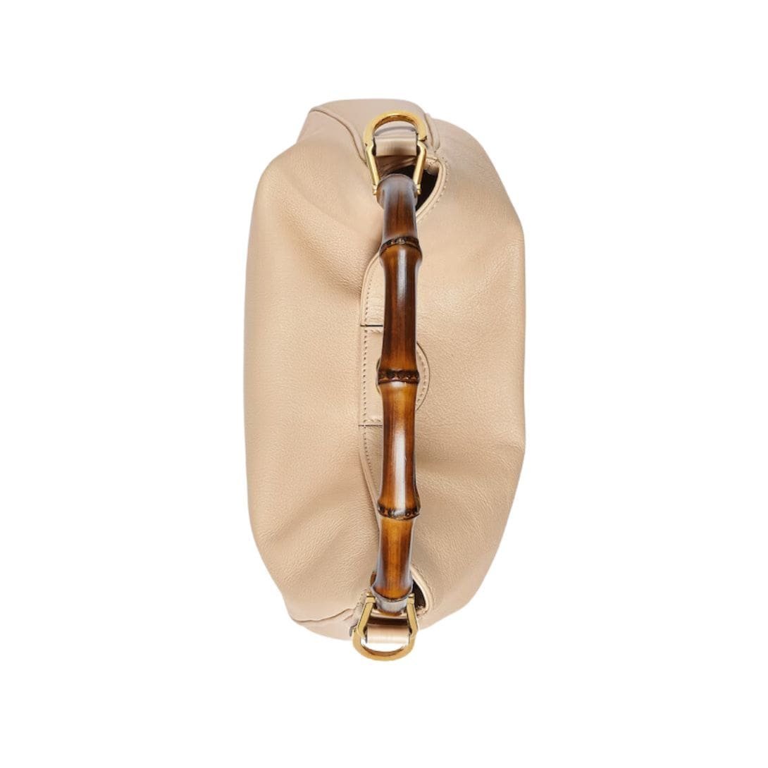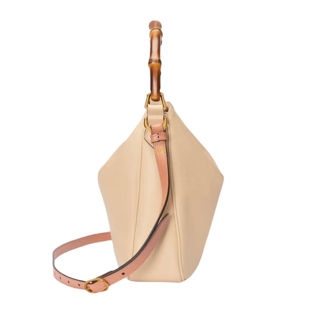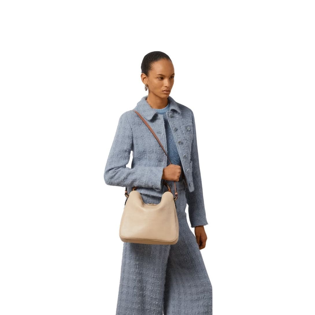 The Diana bag is rendered in rich, supple leather, available in a variety of classic hues and contemporary shades, each meticulously selected to complement its design. The bag’s structure is defined by its clean lines and gently rounded edges, which lend it a refined, understated charm. A standout feature is its iconic bamboo handle, a nod to Gucci’s heritage, which adds a touch of vintage allure and artisanal craftsmanship. GUCCI DIANA MEDIUM SHOULDER BAG