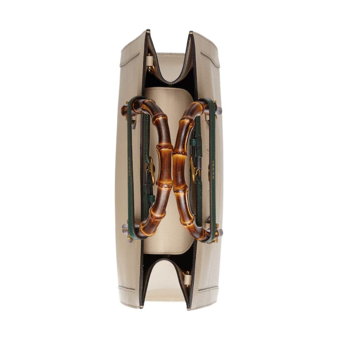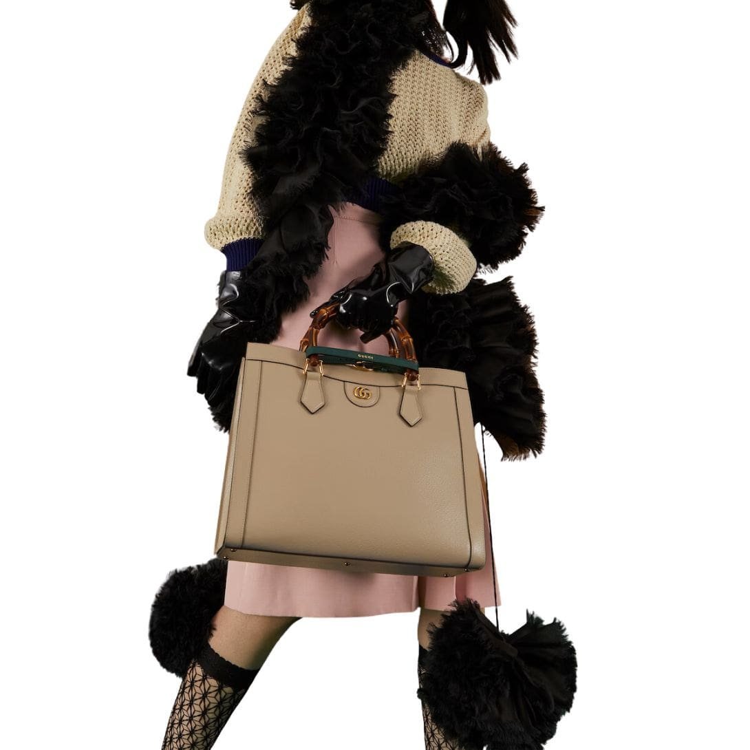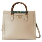 One of the standout features of the Gucci Diana Medium Tote Bag is its bamboo handles. These handles are a signature element of Gucci’s design language, paying homage to the brand’s storied past while adding a unique and recognizable touch. The bamboo is meticulously treated and crafted, offering a comfortable grip and a distinctive aesthetic appeal. GUCCI DIANA MEDIUM TOTE BAG