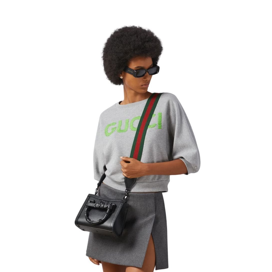 Crafted from high-quality leather, the mini tote exudes sophistication with its sleek design and meticulous attention to detail. The leather is smooth and supple, offering a luxurious feel while ensuring durability. One of the most distinctive features of the Gucci Diana Mini Tote Bag is its bamboo top handles. These iconic handles harken back to the original Gucci bamboo bag introduced in 1947, adding a touch of vintage elegance to the modern silhouette. The bamboo is carefully treated and polished, providing a comfortable grip and a unique aesthetic appeal.