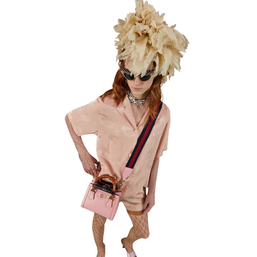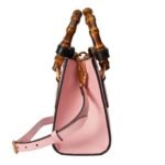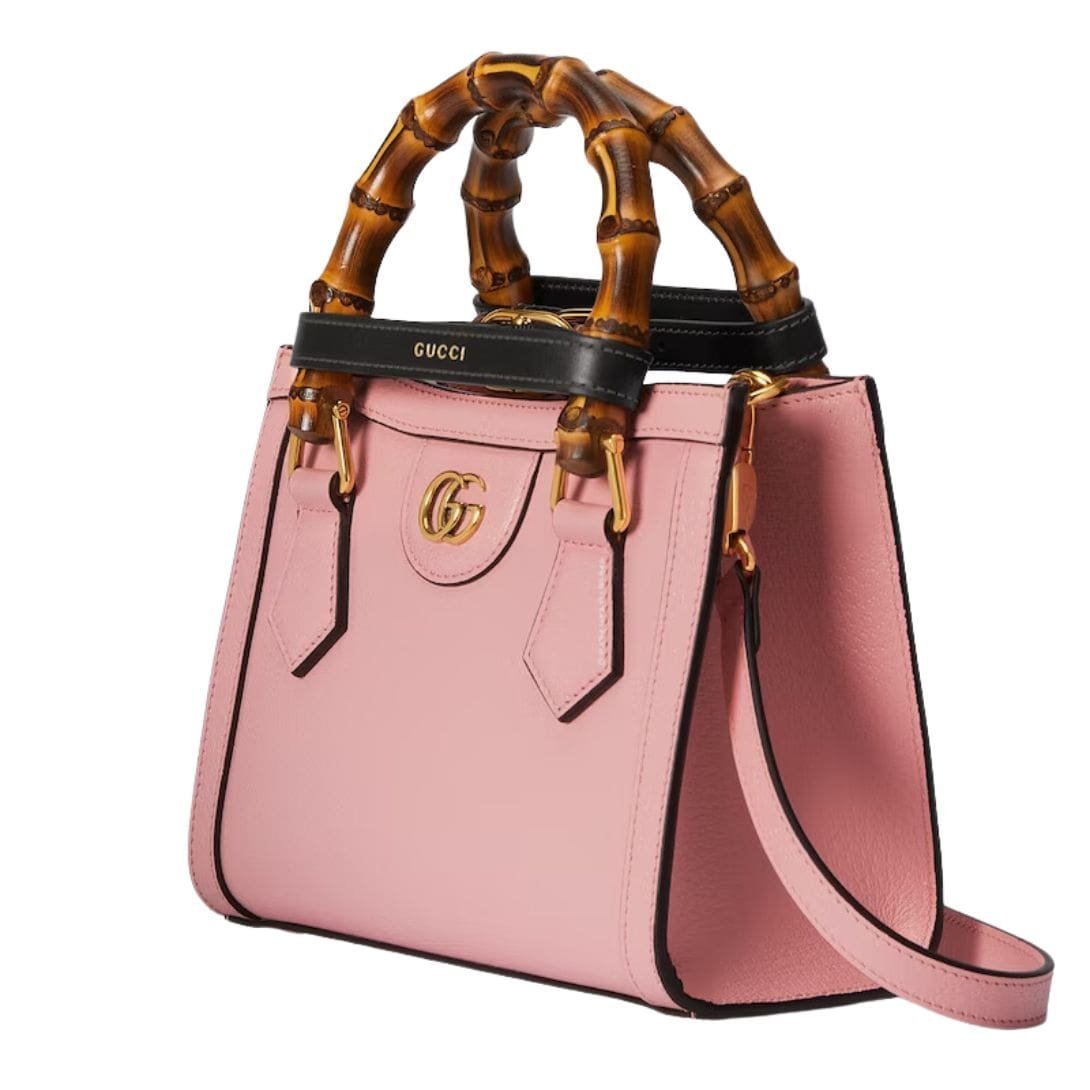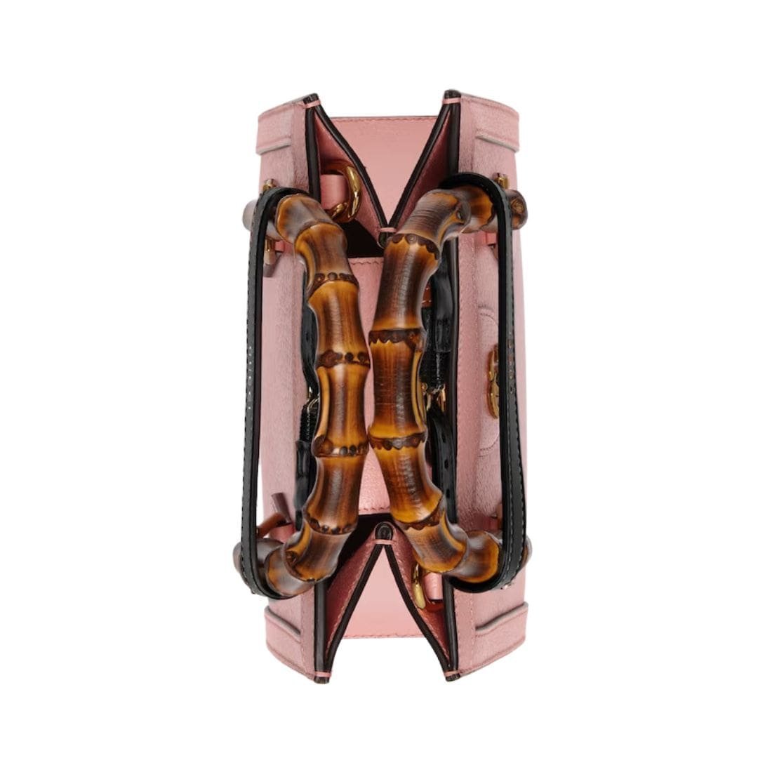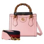 Crafted from high-quality leather, the mini tote exudes sophistication with its sleek design and meticulous attention to detail. The leather is smooth and supple, offering a luxurious feel while ensuring durability. One of the most distinctive features of the Gucci Diana Mini Tote Bag is its bamboo top handles. These iconic handles harken back to the original Gucci bamboo bag introduced in 1947, adding a touch of vintage elegance to the modern silhouette. The bamboo is carefully treated and polished, providing a comfortable grip and a unique aesthetic appeal.
