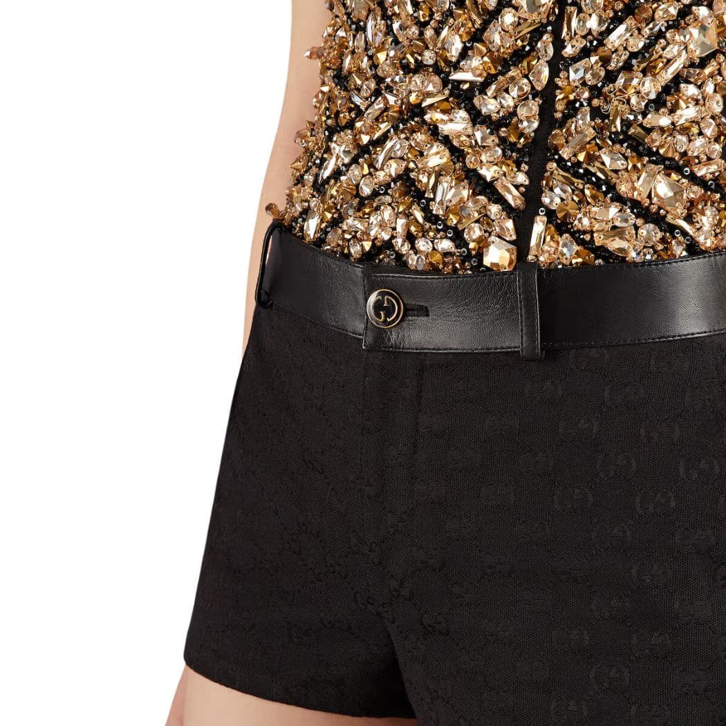 GUCCI GG CANVAS AND LEATHER SHORTS