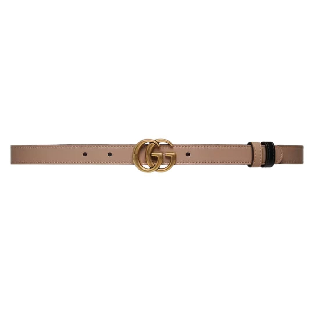 Gucci GG Marmont Reversible Thin Belt Continuing our legacy of timeless design and innovative craftsmanship, we proudly unveil the latest iteration of the iconic GG Marmont collection. Evolving with each season, this renowned line seamlessly merges the vintage allure of ‘70s GG hardware with contemporary elegance, culminating in a symbol of enduring style and sophistication.