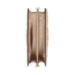 The interior of the GG Matelassé Small Shoulder Bag is thoughtfully designed to offer practicality alongside luxury. Lined with a soft fabric, it includes a main compartment and a slip pocket, perfect for organizing small items. The top zip closure ensures security and ease of access, while the exterior features a subtly embossed GG logo on the front flap, underscoring the brand’s signature style. GUCCI GG MATELASSE SMALL BAG