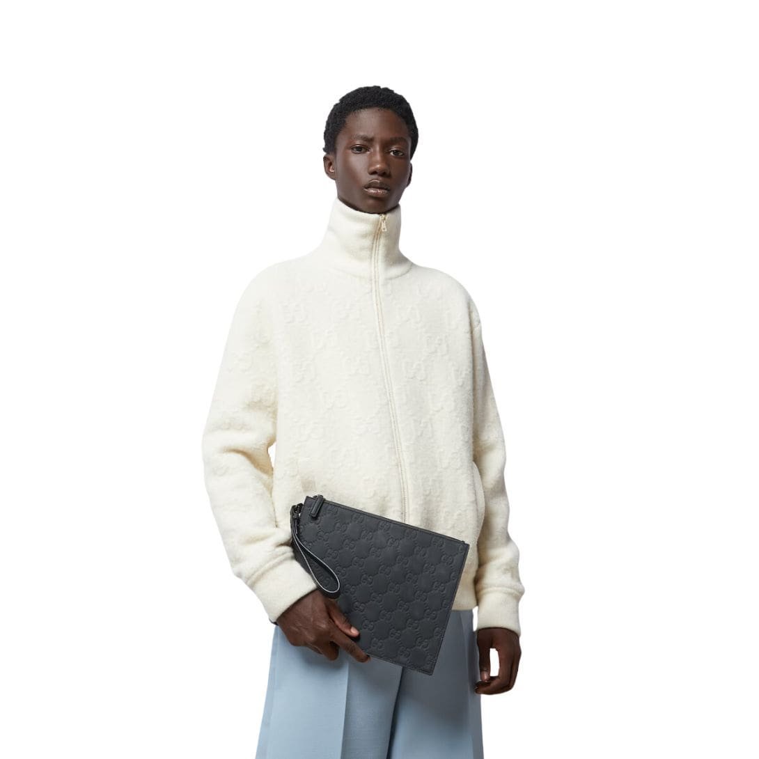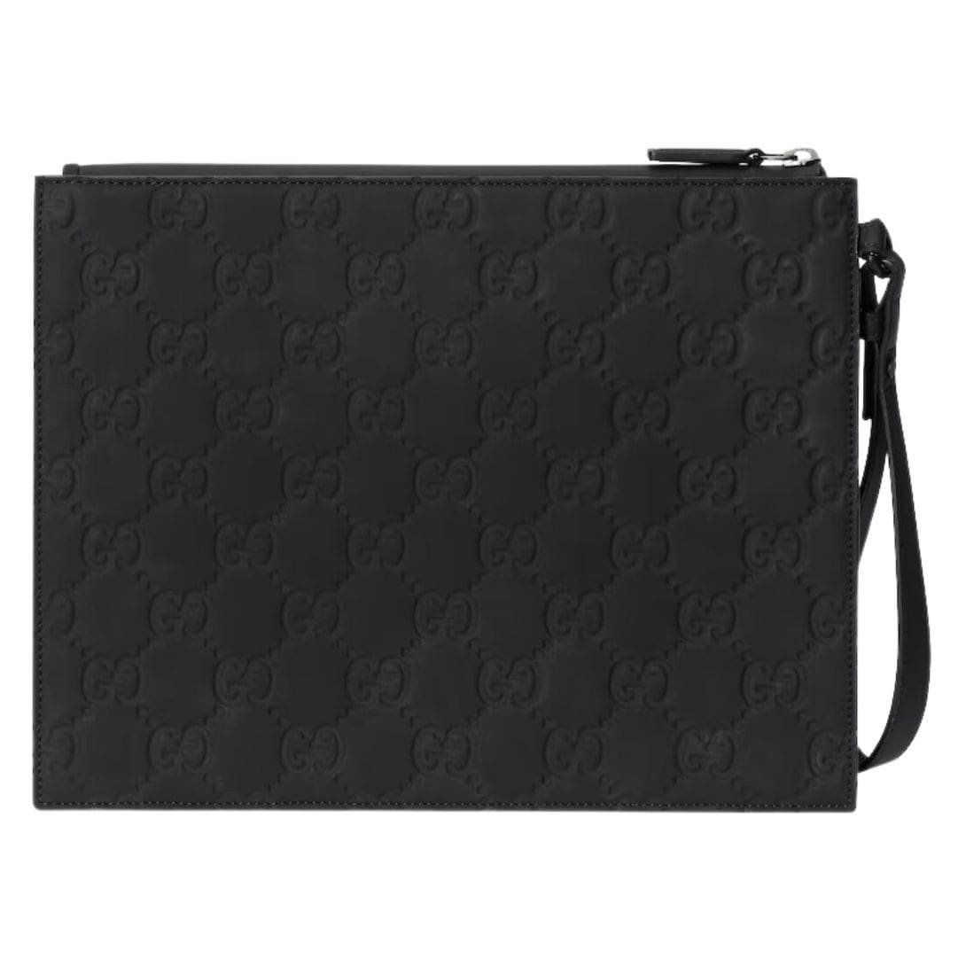 Versatility is a key attribute of the GG Rubber Effect Pouch. Its minimalist design allows it to seamlessly transition from a chic evening accessory to a practical day-to-day companion. The pouch can be carried on its own or slipped into a larger bag for added organization. Its rubberized exterior is also easy to clean, making it an ideal choice for those who value both style and functionality. GUCCI GG RUBBER EFFECT POUCH
