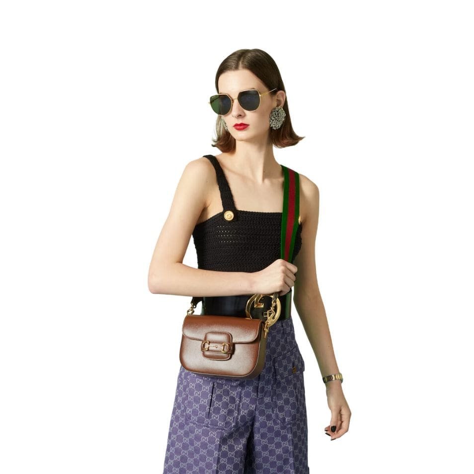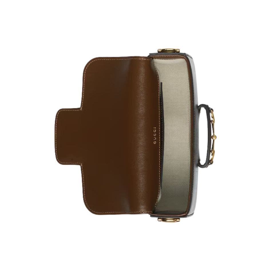 Measuring at a compact size, the Horsebit 1955 Mini Bag is perfect for those who appreciate a refined yet practical accessory. The exterior is made from high-quality leather, available in various shades, including classic black, pristine white, and rich brown, each exuding its unique charm. The leather is meticulously treated to achieve a smooth, supple finish that enhances its durability and timeless appeal. GUCCI HORSEBIT 1955 MINI BAG
