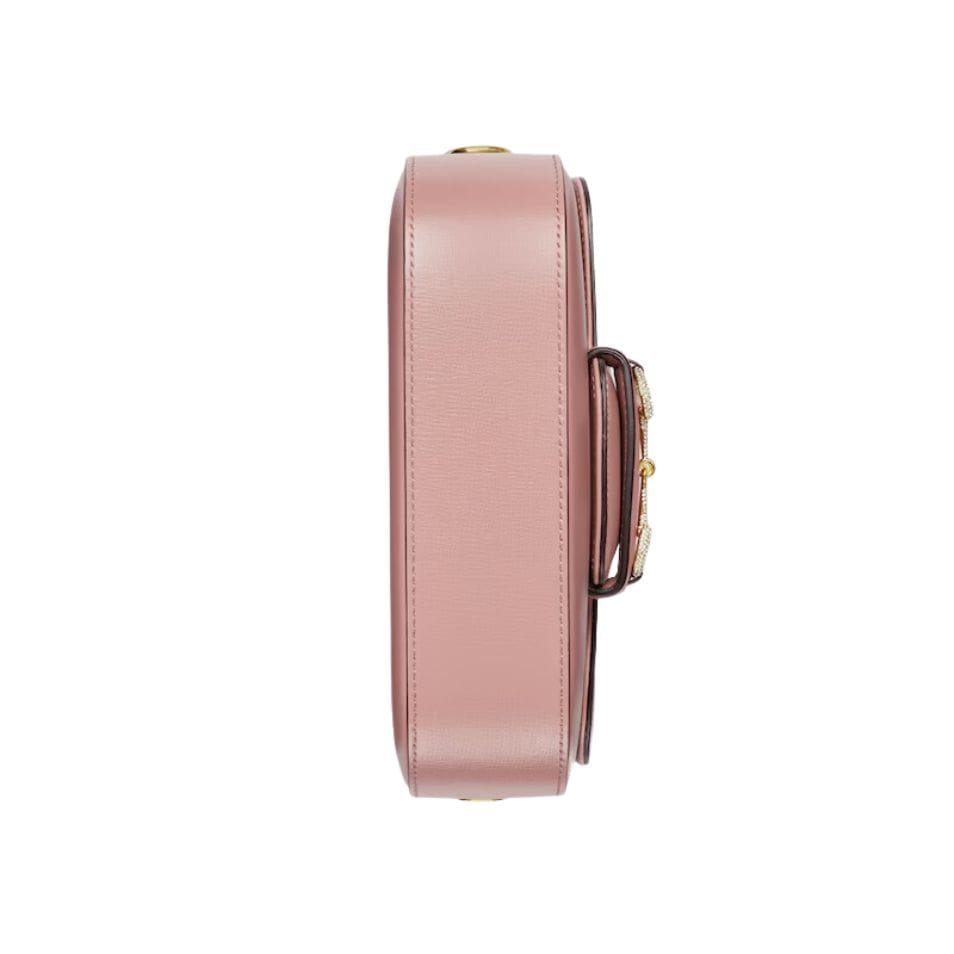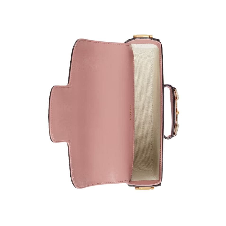 Measuring at a compact size, the Horsebit 1955 Mini Bag is perfect for those who appreciate a refined yet practical accessory. The exterior is made from high-quality leather, available in various shades, including classic black, pristine white, and rich brown, each exuding its unique charm. The leather is meticulously treated to achieve a smooth, supple finish that enhances its durability and timeless appeal. GUCCI HORSEBIT 1955 MINI BAG