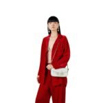 Measuring approximately 9.8 inches in width, 7.9 inches in height, and 3.1 inches in depth, the bag offers a compact yet functional size, perfect for day-to-night wear. The structured silhouette is both sophisticated and practical, with a flap closure that secures your belongings while maintaining the bag’s sleek profile. The adjustable shoulder strap, also adorned with gold-tone hardware, allows for versatile styling options, whether worn crossbody or on the shoulder.