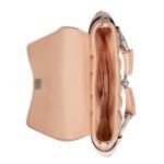 Measuring approximately 9.8 inches in width, 7.9 inches in height, and 3.1 inches in depth, the bag offers a compact yet functional size, perfect for day-to-night wear. The structured silhouette is both sophisticated and practical, with a flap closure that secures your belongings while maintaining the bag’s sleek profile. The adjustable shoulder strap, also adorned with gold-tone hardware, allows for versatile styling options, whether worn crossbody or on the shoulder.