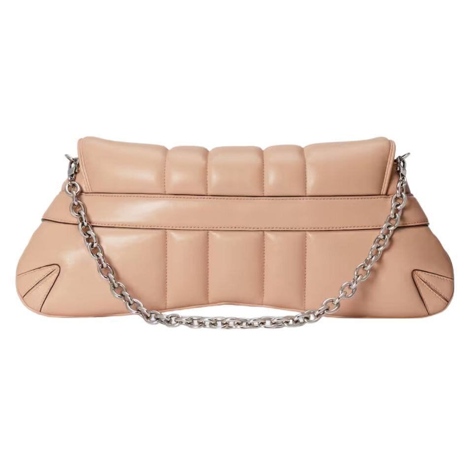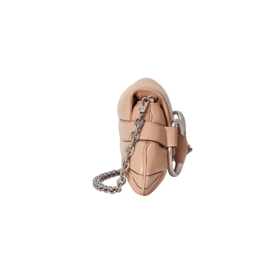 The standout feature of this bag is the distinctive horsebit hardware, a nod to Gucci’s equestrian roots. This polished metal embellishment sits prominently on the front flap, adding a touch of opulence and vintage charm to the overall design. The horsebit detail is elegantly integrated with a slim chain strap, which can be worn on the shoulder or across the body for versatile styling options. The chain is carefully crafted to ensure comfort and durability, making it a practical choice for everyday use. GUCCI HORSEBIT CHAIN SMALL SHOULDER BAG