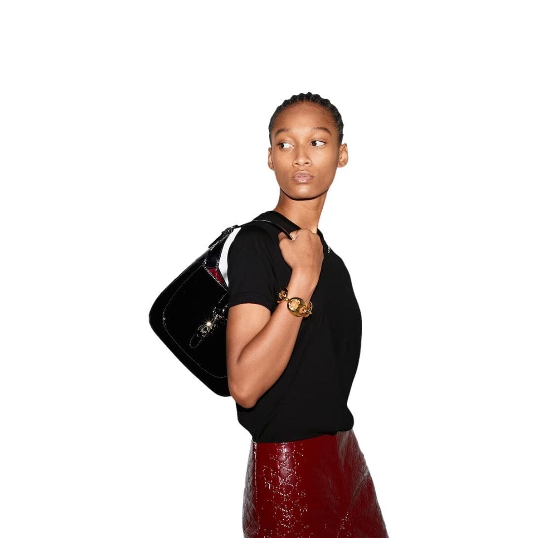 Crafted from the finest materials, the Jackie Small Shoulder Bag showcases Gucci’s unparalleled craftsmanship and attention to detail. The bag is available in a variety of finishes, including supple leather and the brand’s signature GG Supreme canvas, providing options to suit different styles and preferences. Each version is meticulously constructed, ensuring durability and a luxurious feel.