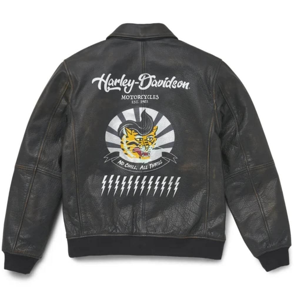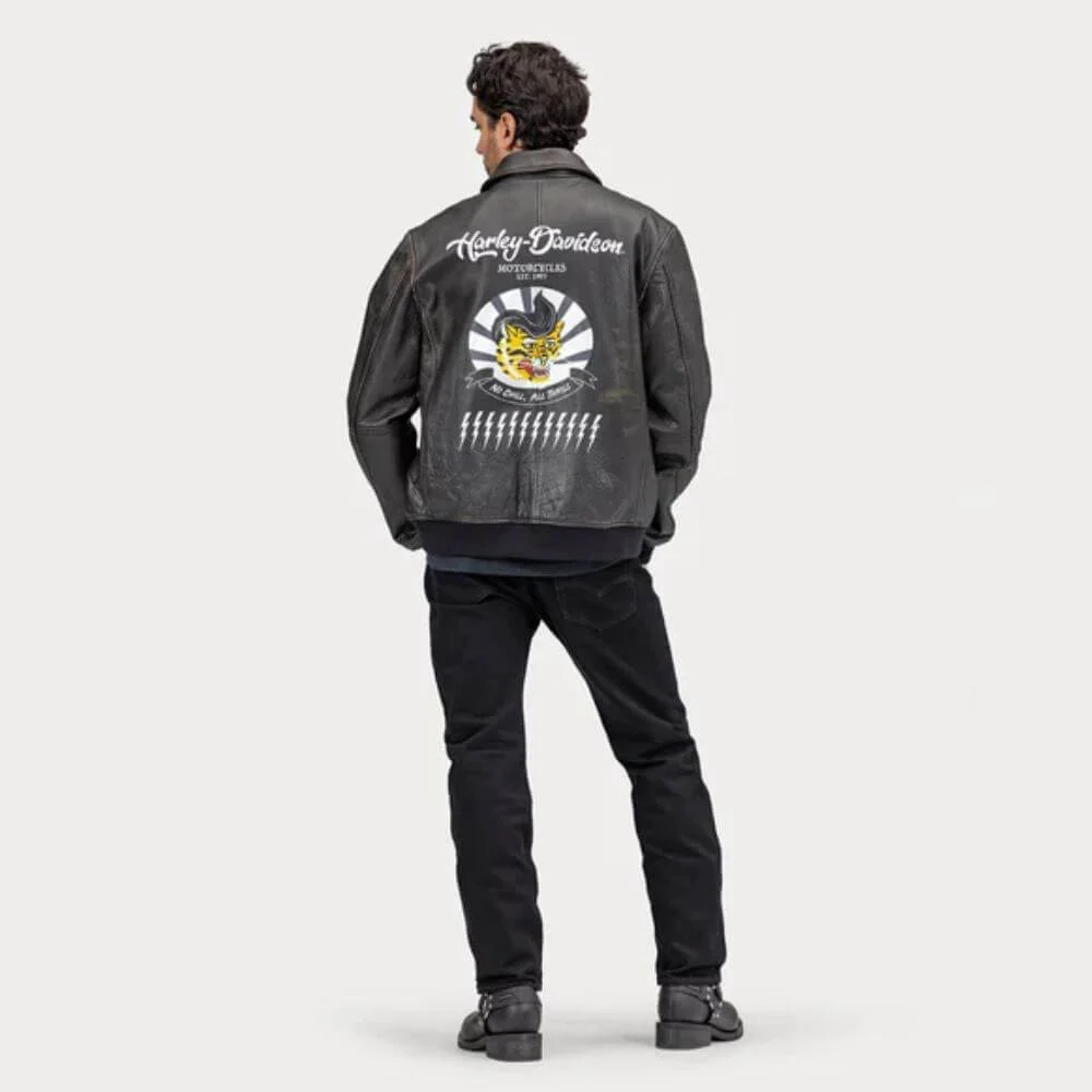 HARLEY-DAVIDSON MEN’S ARCHER BOMBER LEATHER JACKET is a wearable work of vintage-inspired art. It’s durably crafted from silky-soft lambskin and fully lined with pliable and fast-drying polyester taffeta. This authentic bomber style features a sturdy, two-way zipper and a snap-closed collar tab. It’s masterfully branded with a collection of vibrant graphics that connect with one common theme, freedom of the road.