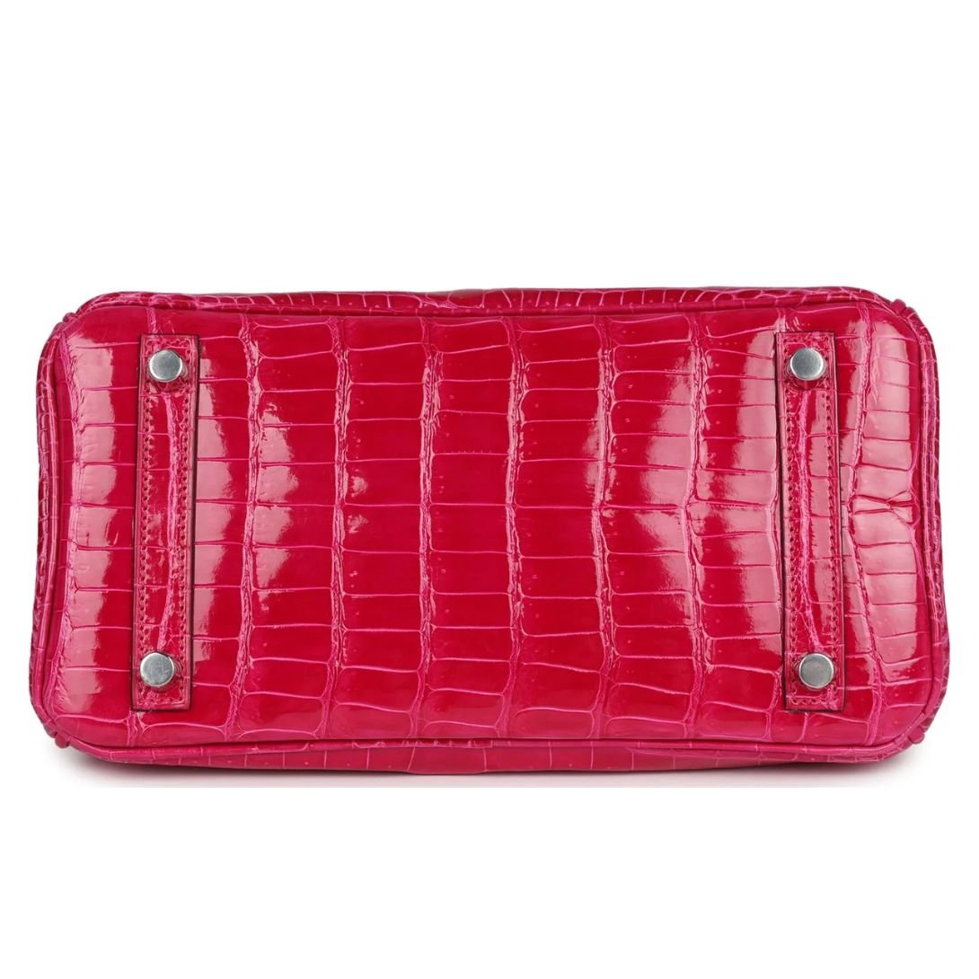 This Birkin in Rose Mexico Shiny Porosus Crocodile leather is a stunning piece, combining luxurious materials and meticulous craftsmanship. It remains in brand new, unworn condition, making it a remarkable addition to any collection.