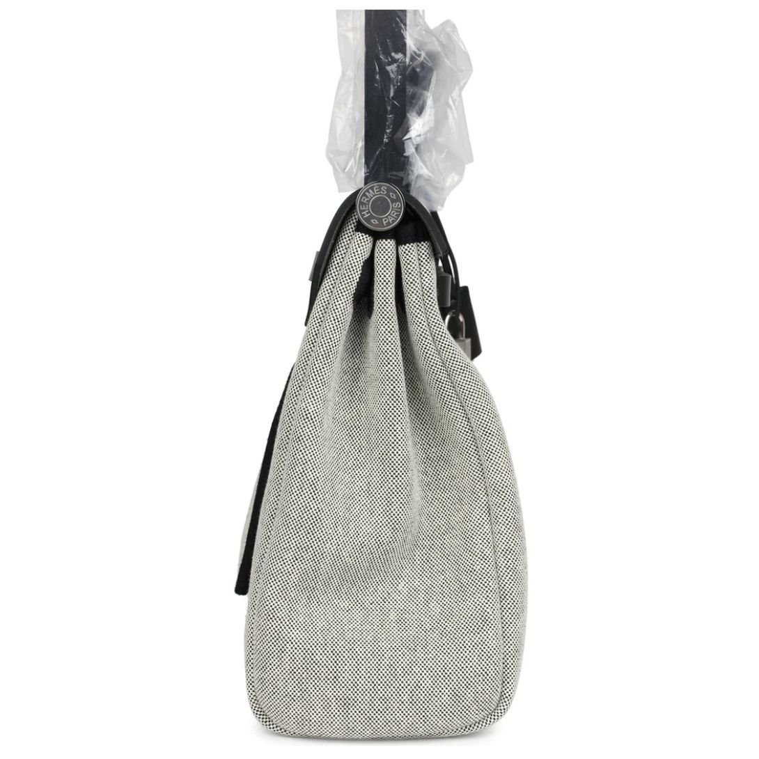 HERMÈS HERBAG ZIP 31 PM HOBNAILED BLACK AND ECRU PRINTED H PLUME CANVAS AND VACHE HUNTER PALLADIUM HARDWARE
