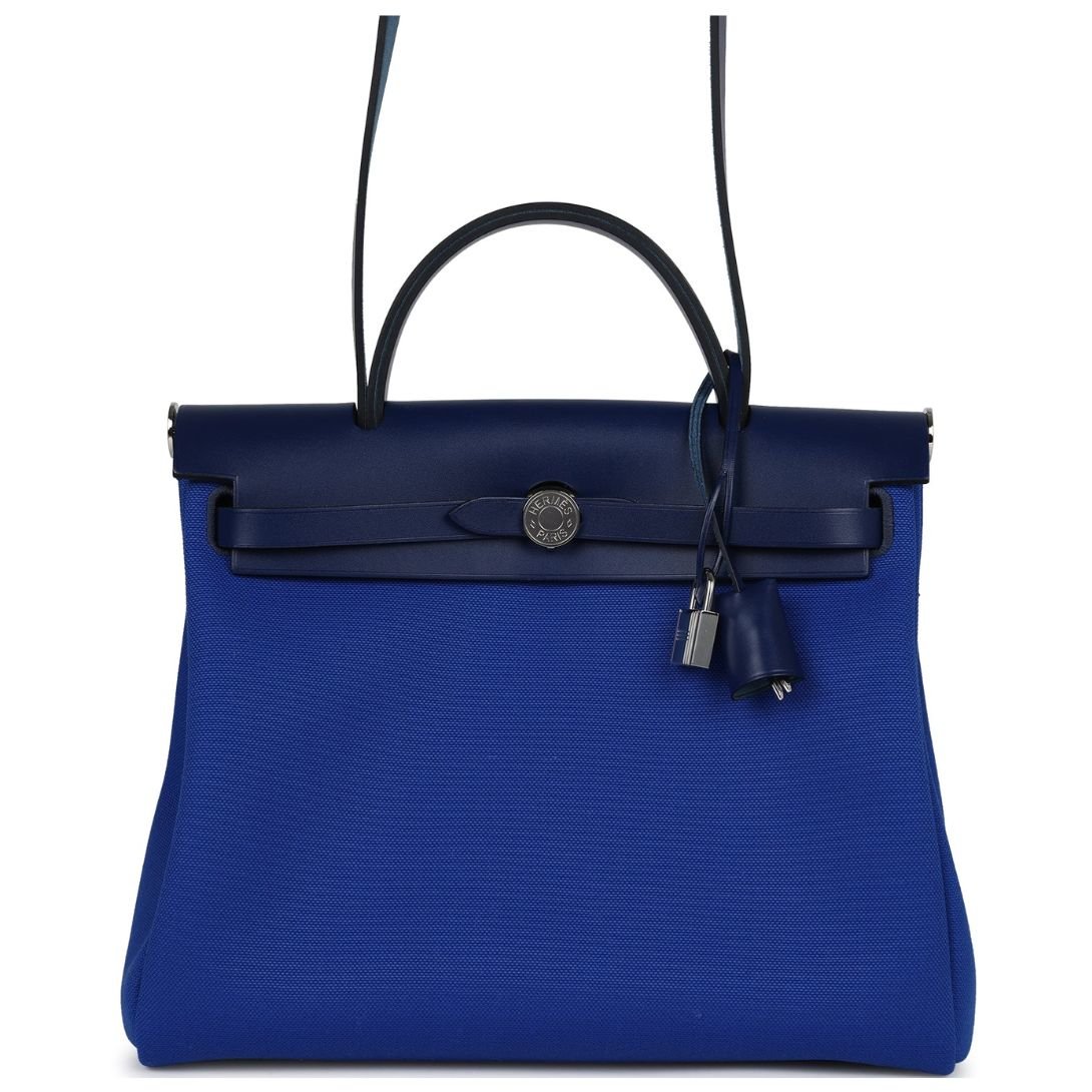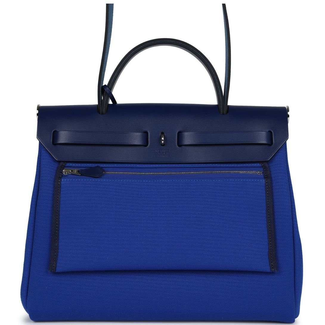 HERMÈS HERBAG ZIP PM 31 BLEU BILL TOILE MILITAIRE CANVAS AND BLEU SAPHIR VACHE HUNTER PALLADIUM HARDWARE