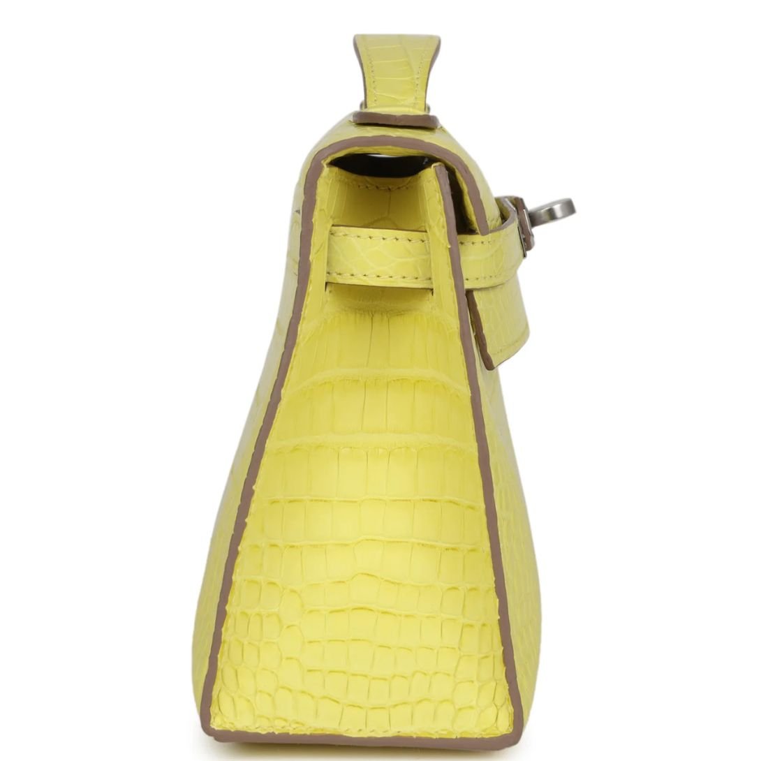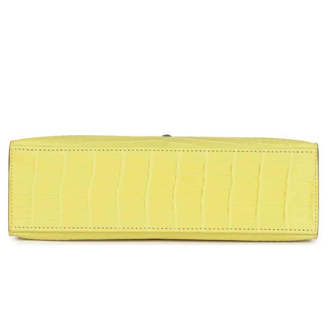 HERMÈS KELLY POCHETTE LIME MATTE ALLIGATOR PALLADIUM HARDWARE