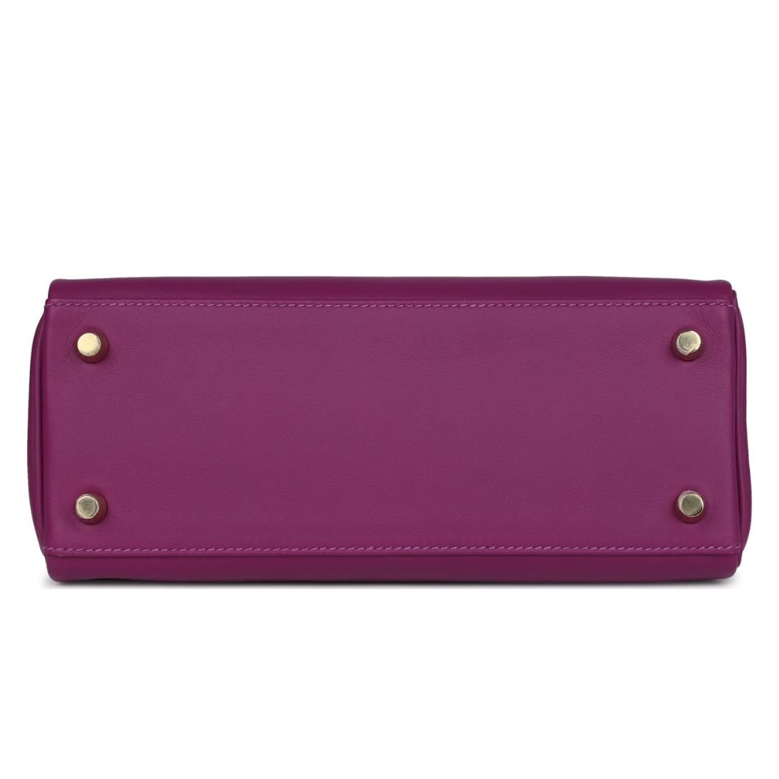 This Kelly in the Retourne style is crafted from Anemone swift leather with permabrass hardware and features: