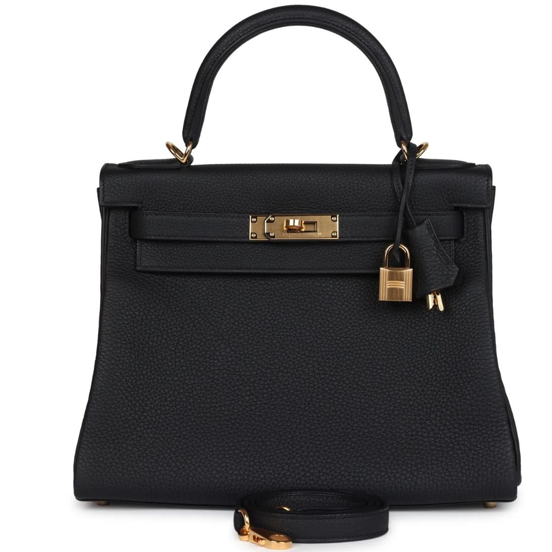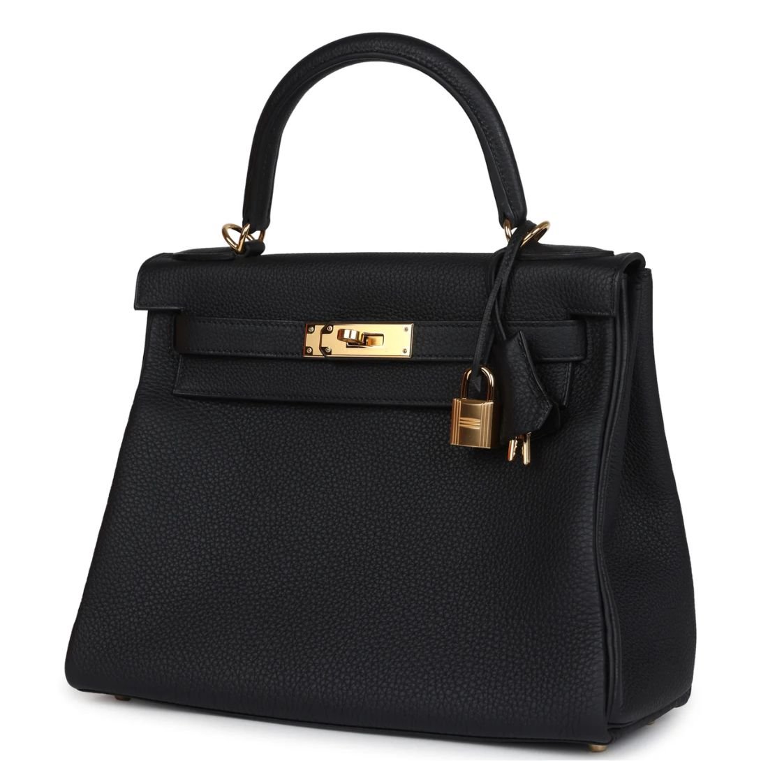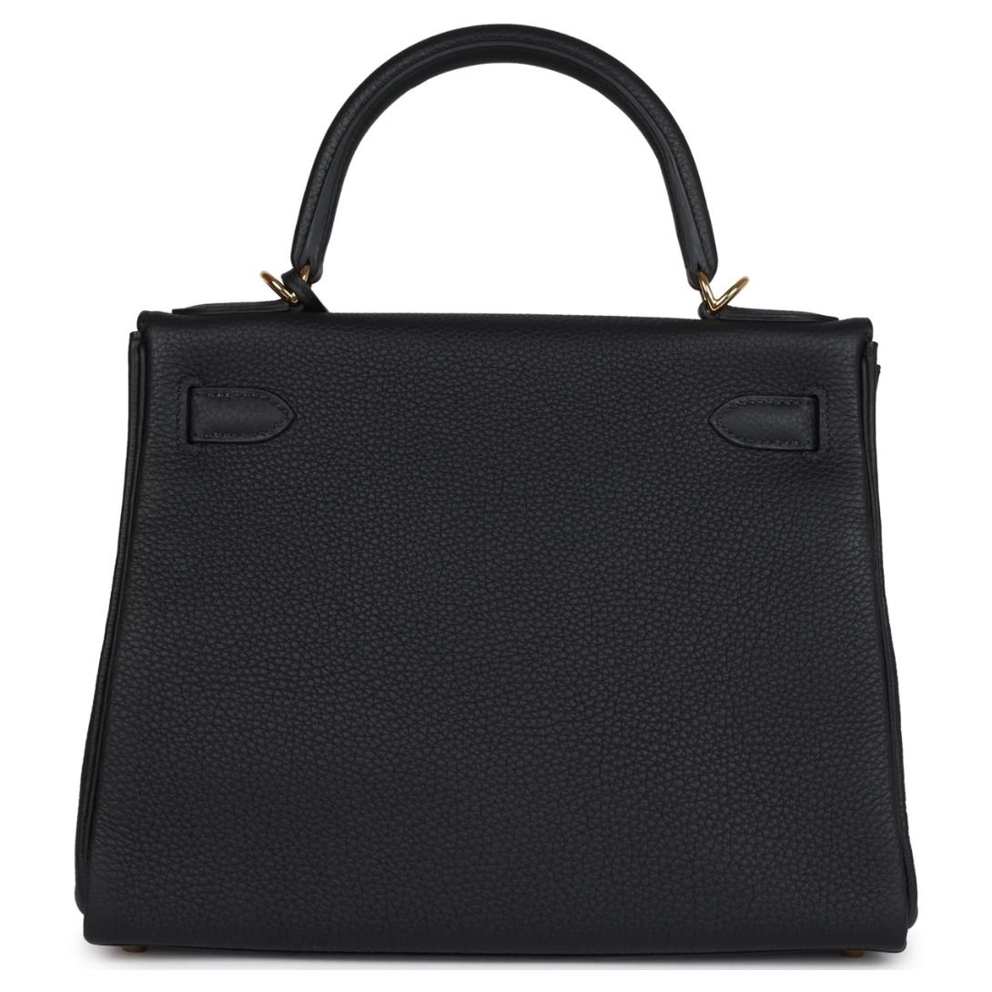 HERMÈS KELLY RETOURNE 28 BLACK TOGO GOLD HARDWARE