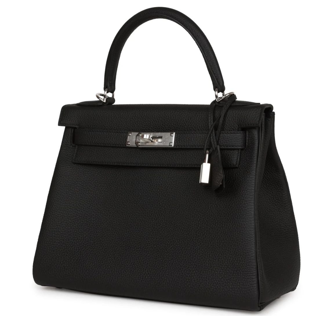 HERMÈS KELLY RETOURNE 28 BLACK TOGO PALLADIUM HARDWARE