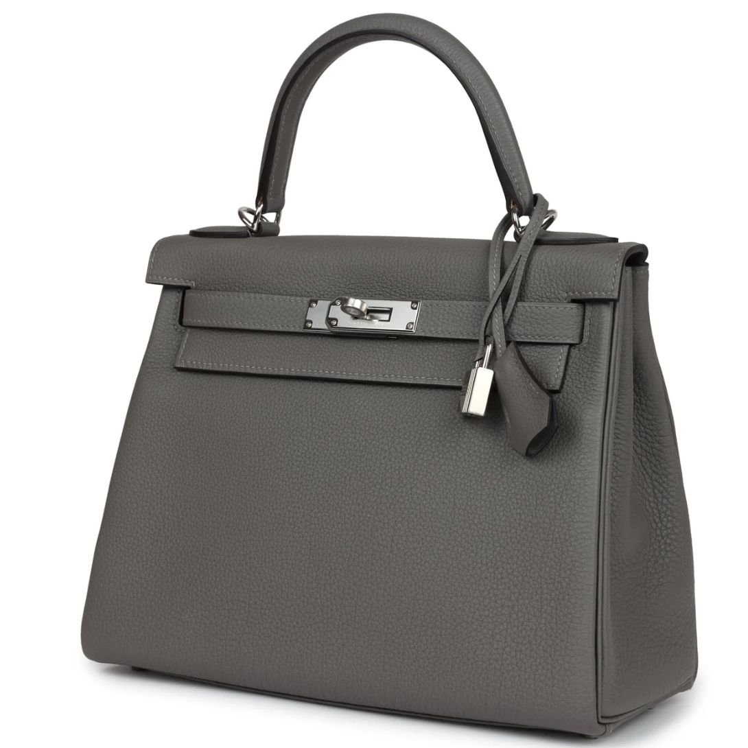 HERMÈS KELLY RETOURNE 28 GRIS MEYER TOGO PALLADIUM HARDWARE