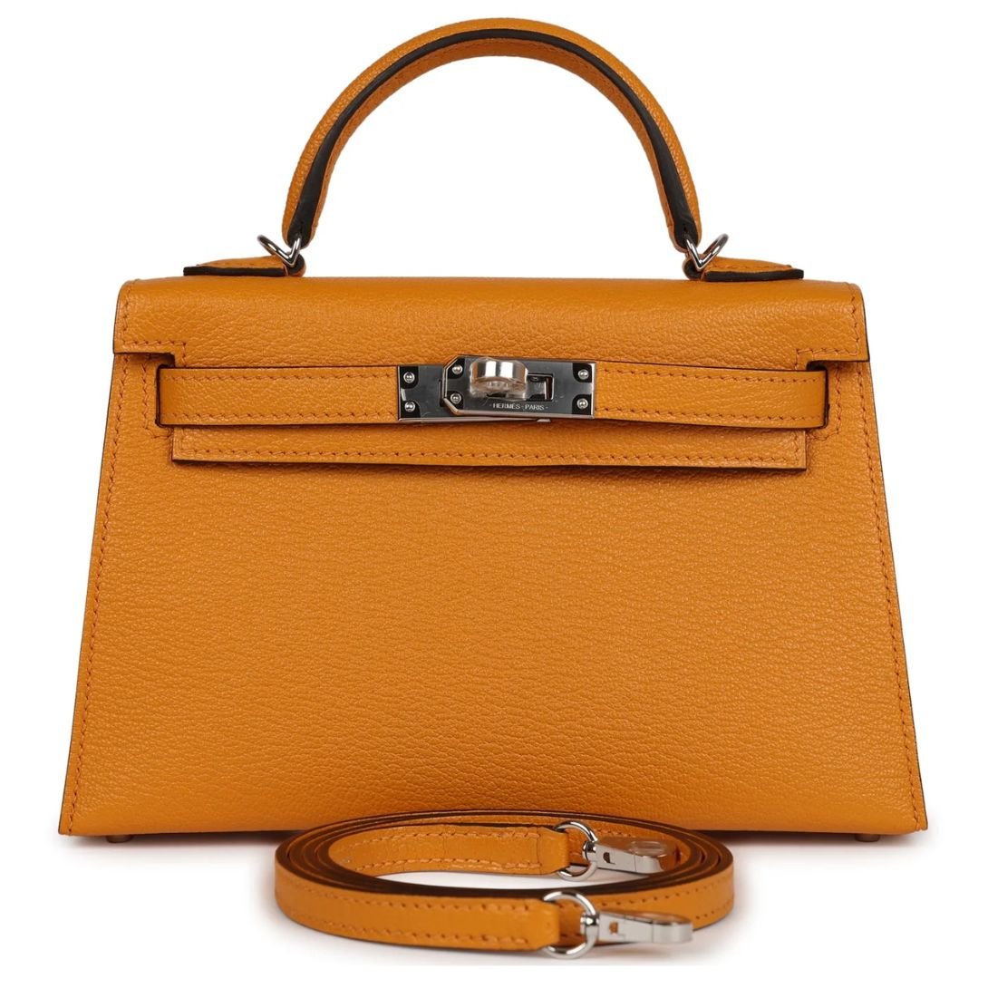 HERMÈS KELLY SELLIER 20 MOUTARDE CHEVRE PALLADIUM HARDWARE