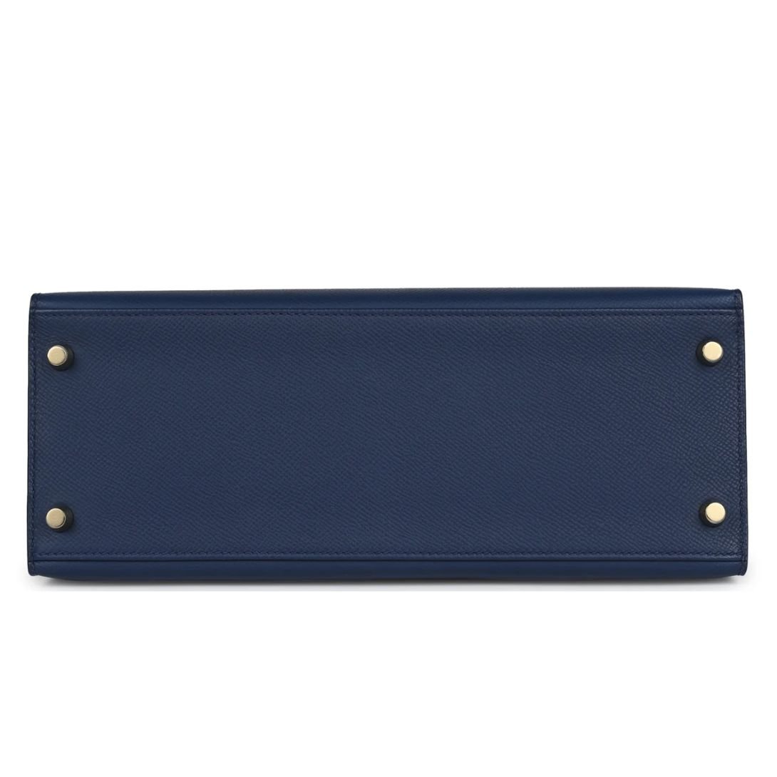 This Hermès Kelly Sellier in Bleu Navy epsom leather with gold hardware offers both elegance and versatility, combining iconic style with a luxurious and timeless design. It is a stunning and practical piece for both everyday use and formal occasions, presented in new and never worn condition with full accompanying items.