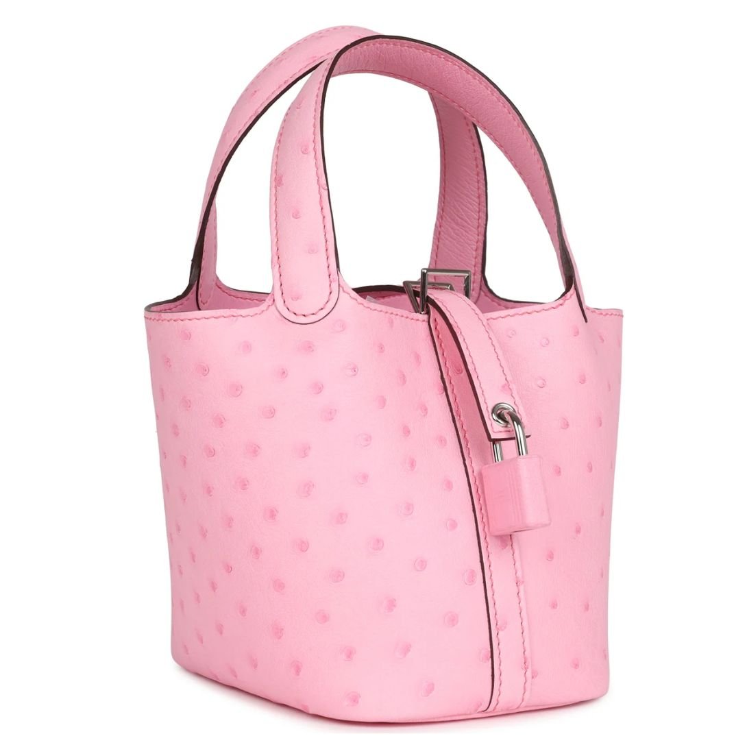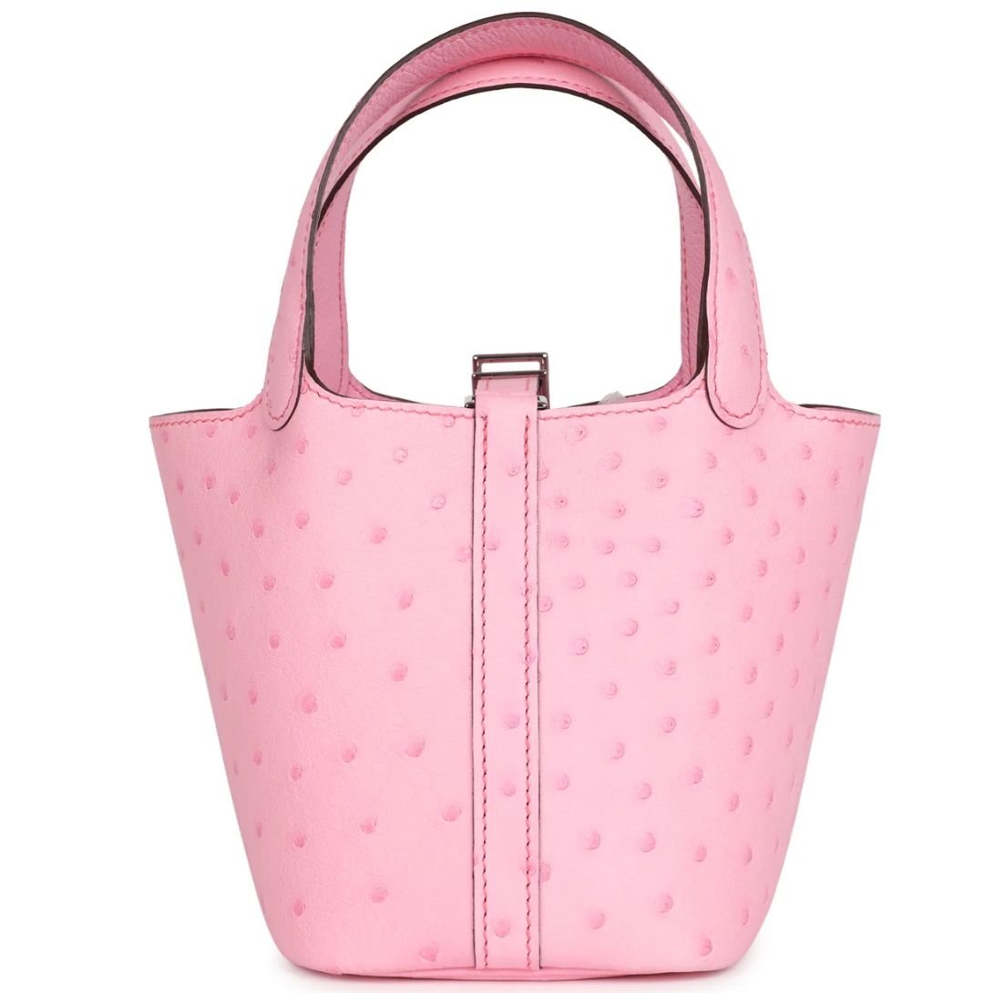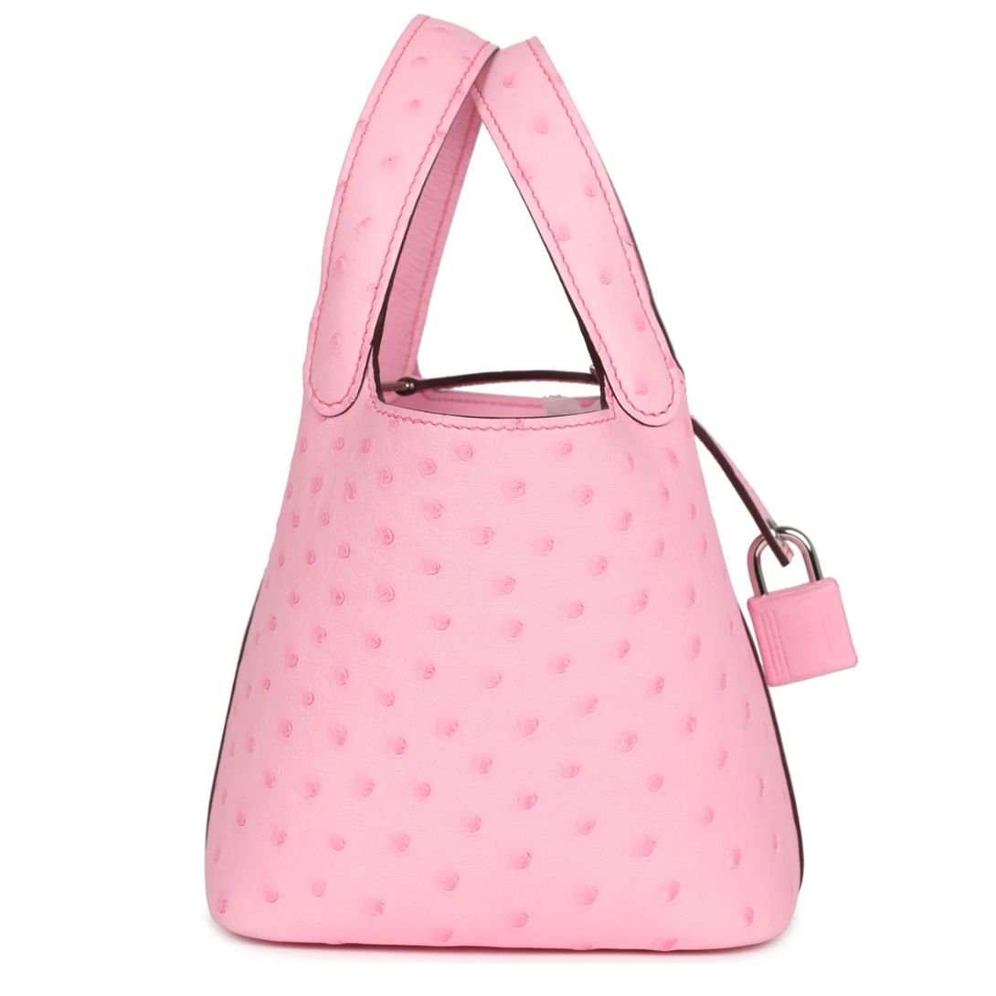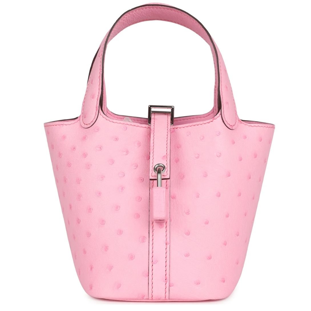 HERMÈS MICRO PICOTIN LOCK 14 BUBBLEGUM OSTRICH PALLADIUM HARDWARE