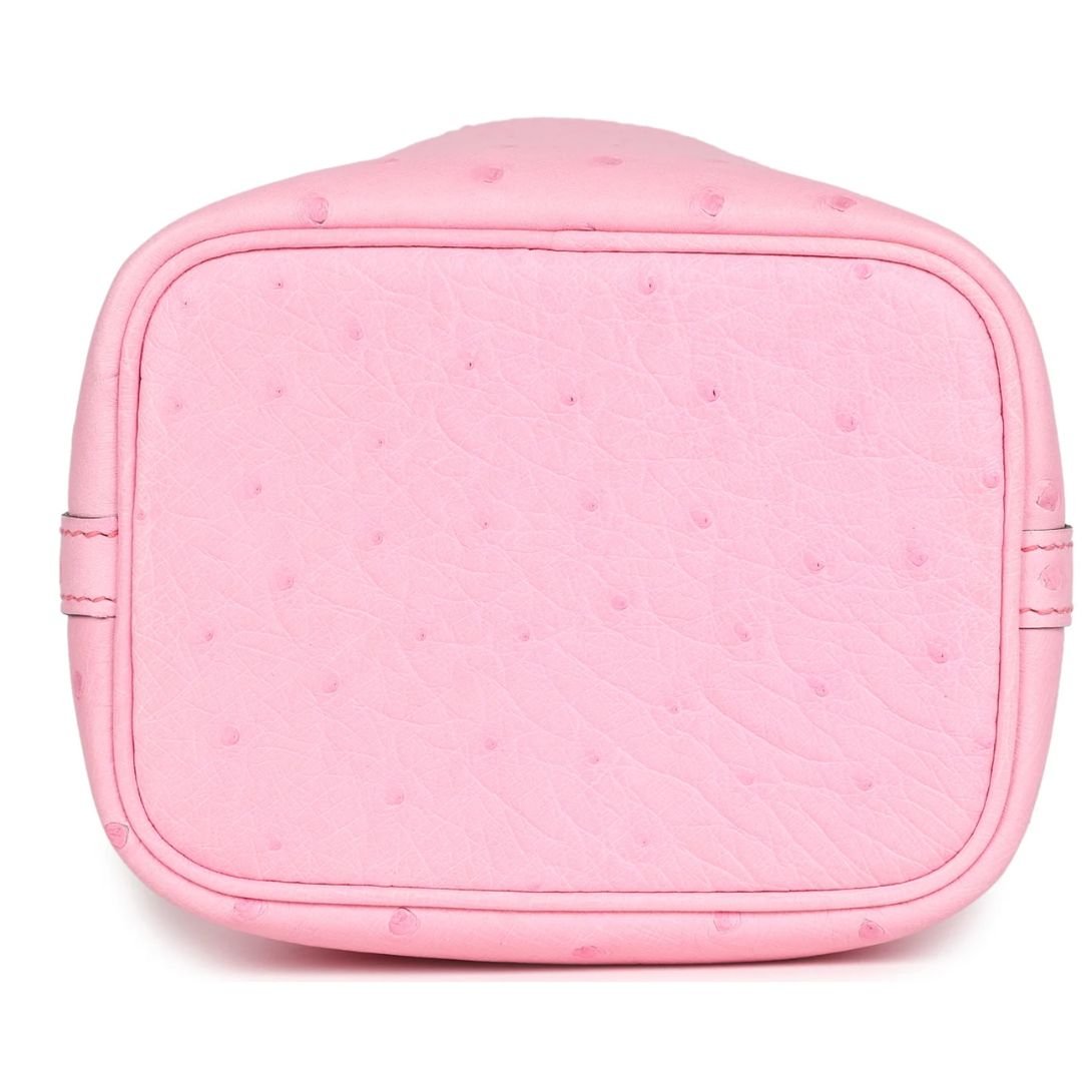 This Micro Picotin Lock in Bubblegum Pink Ostrich leather with palladium hardware is a charming and luxurious miniature rendition of Hermès’ iconic bucket bag. Its petite size and vibrant color make it a perfect statement accessory for any outfit.