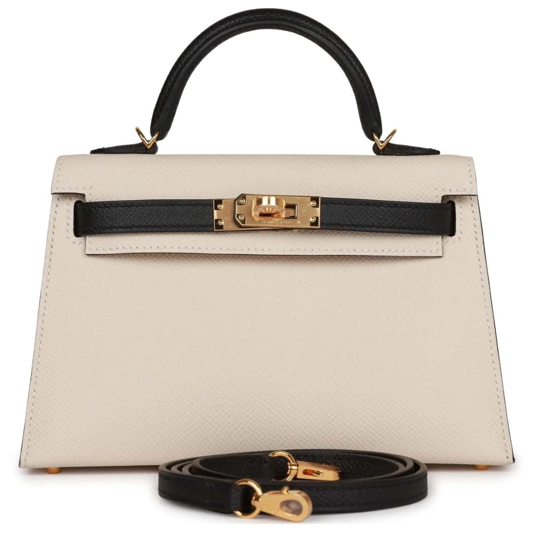 HERMÈS SPECIAL ORDER (HSS) KELLY SELLIER 20 CRAIE AND BLACK EPSOM GOLD HARDWARE