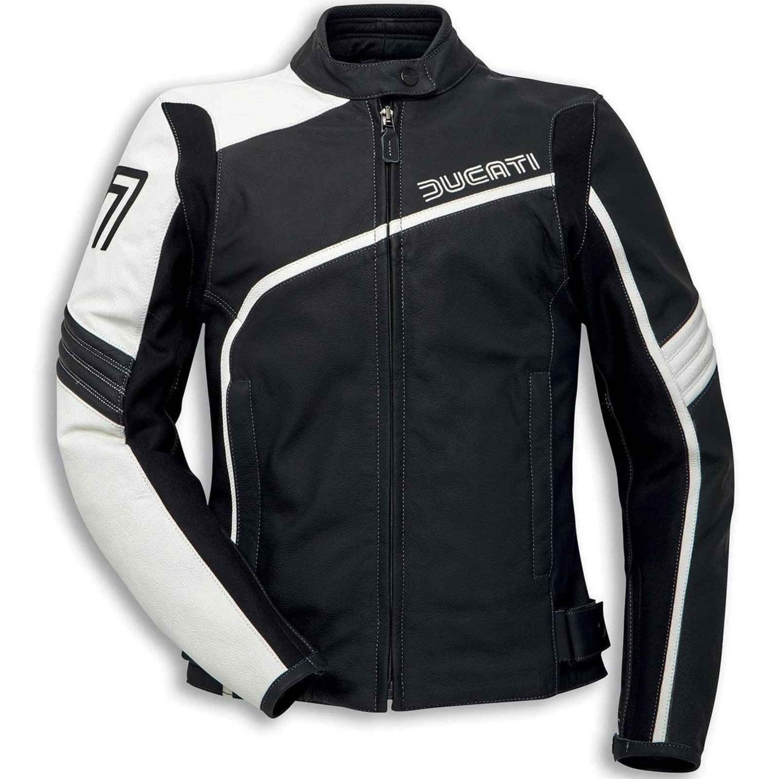 The historical Ducati 77 leather jacket is specially designed for professional bikers to fulfill their biking passion on track with great safety. This Jacket features excellent design & comfort, 100% genuine Cowhide leather, Approved internal & external Protectors on Shoulder, Elbows and Back, and YKK Zippers for Performance.